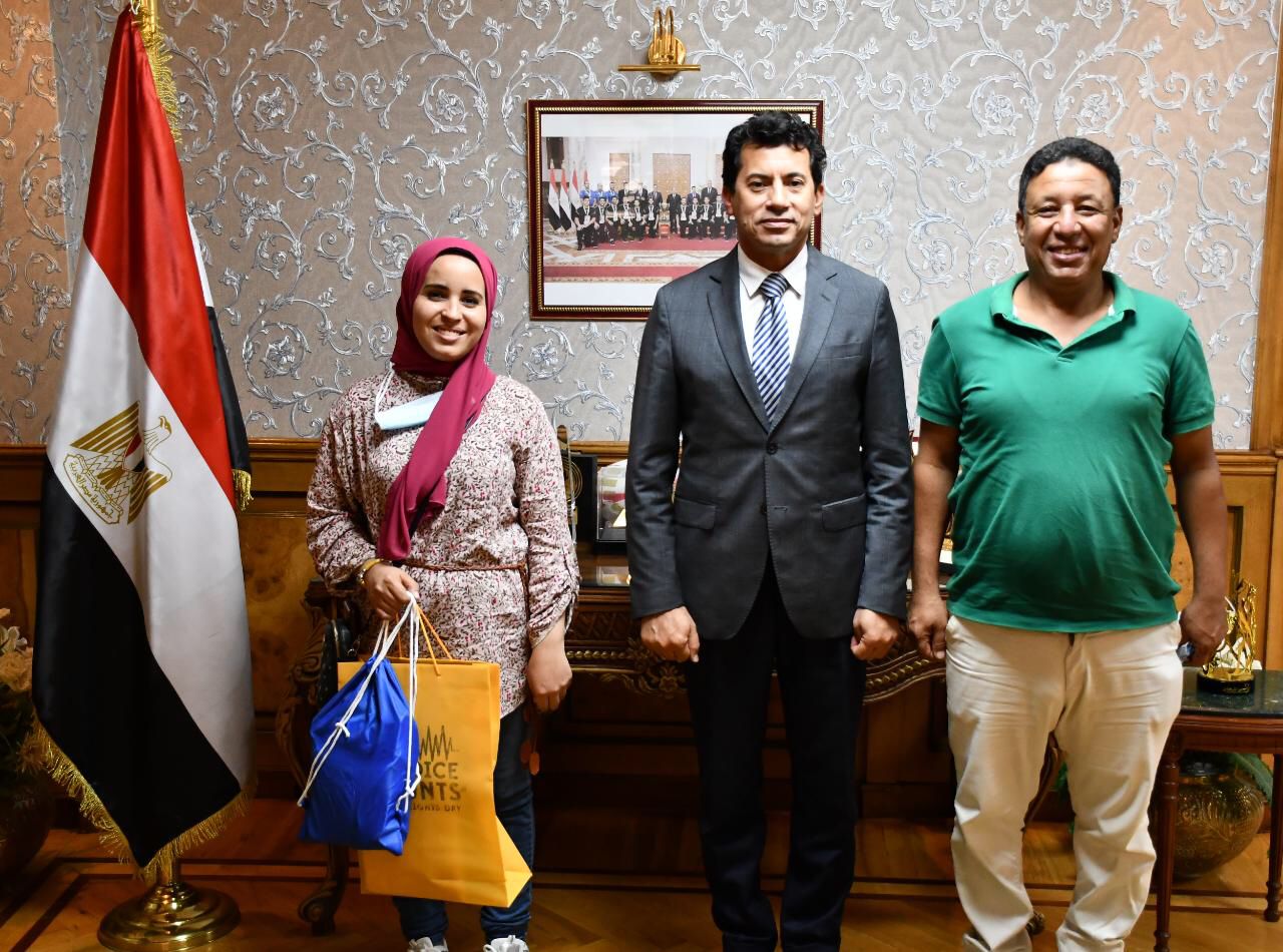 وزير الشباب والرياضة يكرم آية عصام الدين بائعة غزل البنات