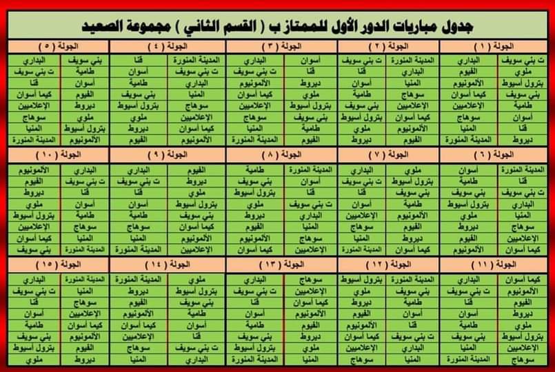 جدول مباريات الدور الأول لمجموعة الصعيد بدوري القسم الثاني