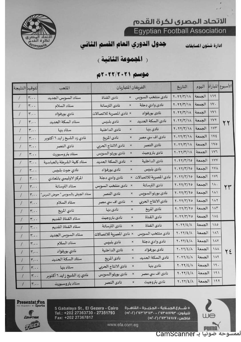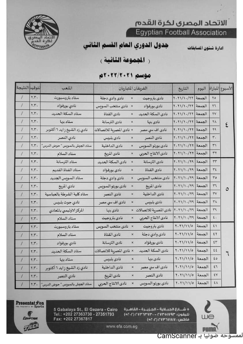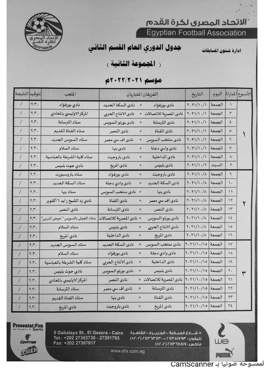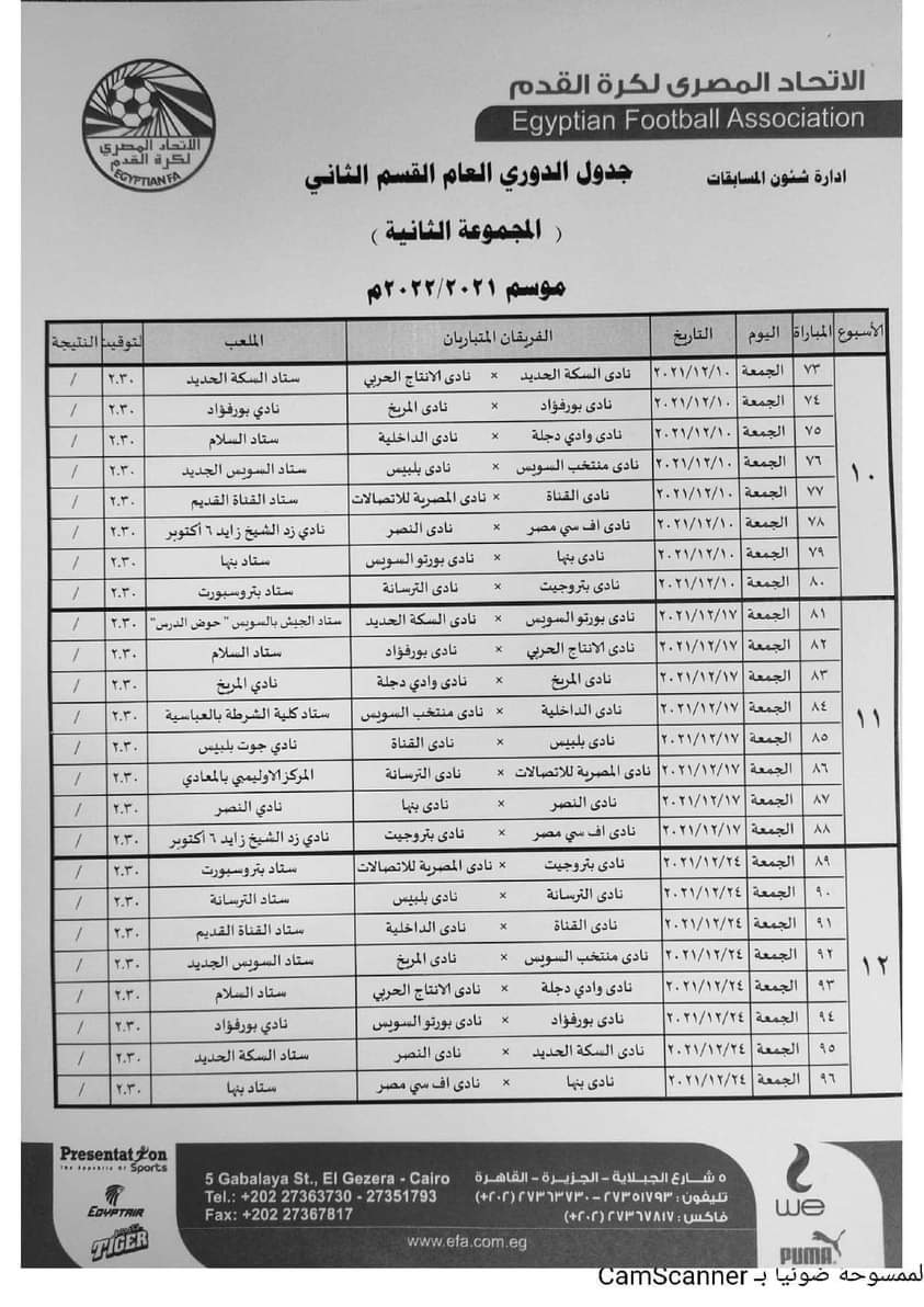 تنشر فيتو الجدول الكامل لمباريات المجموعة الثانية لمسابقة دوري القسم الثاني مجموعة القاهرة والقناة موسم 2021 /2022.