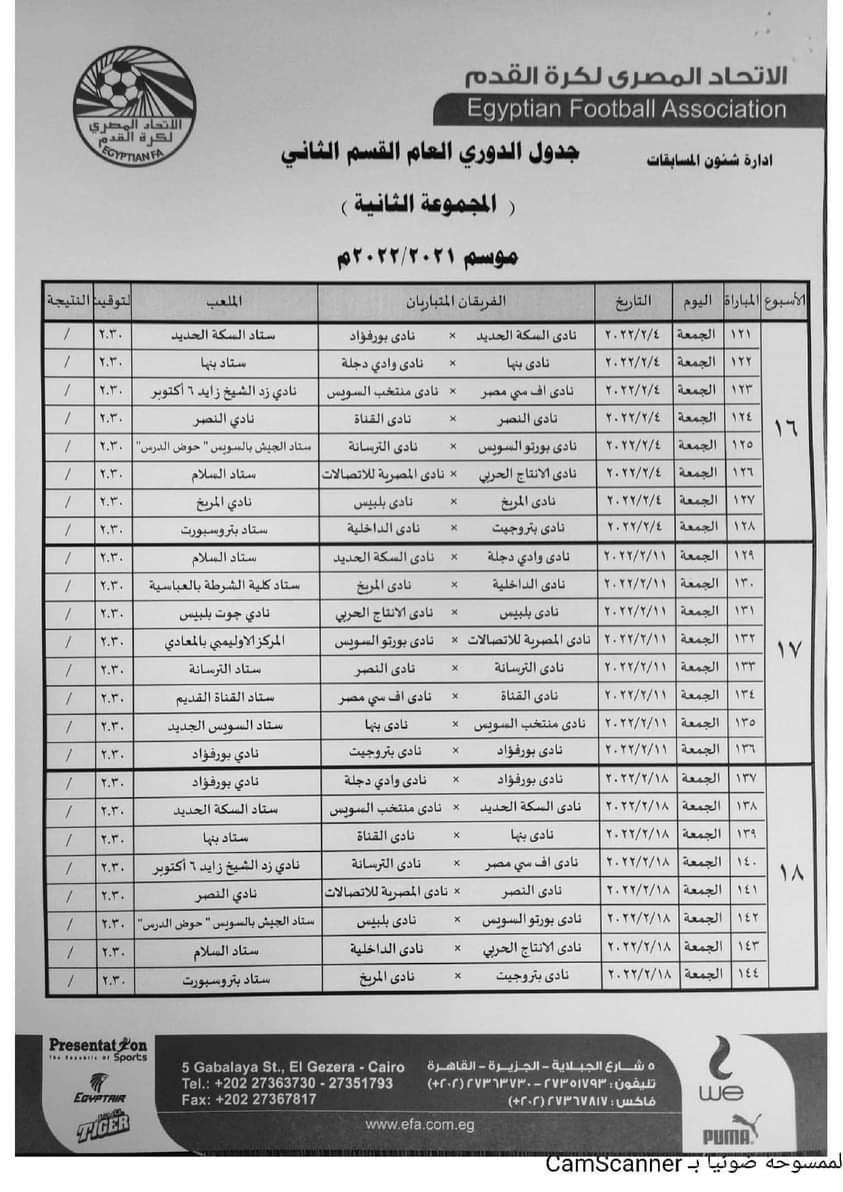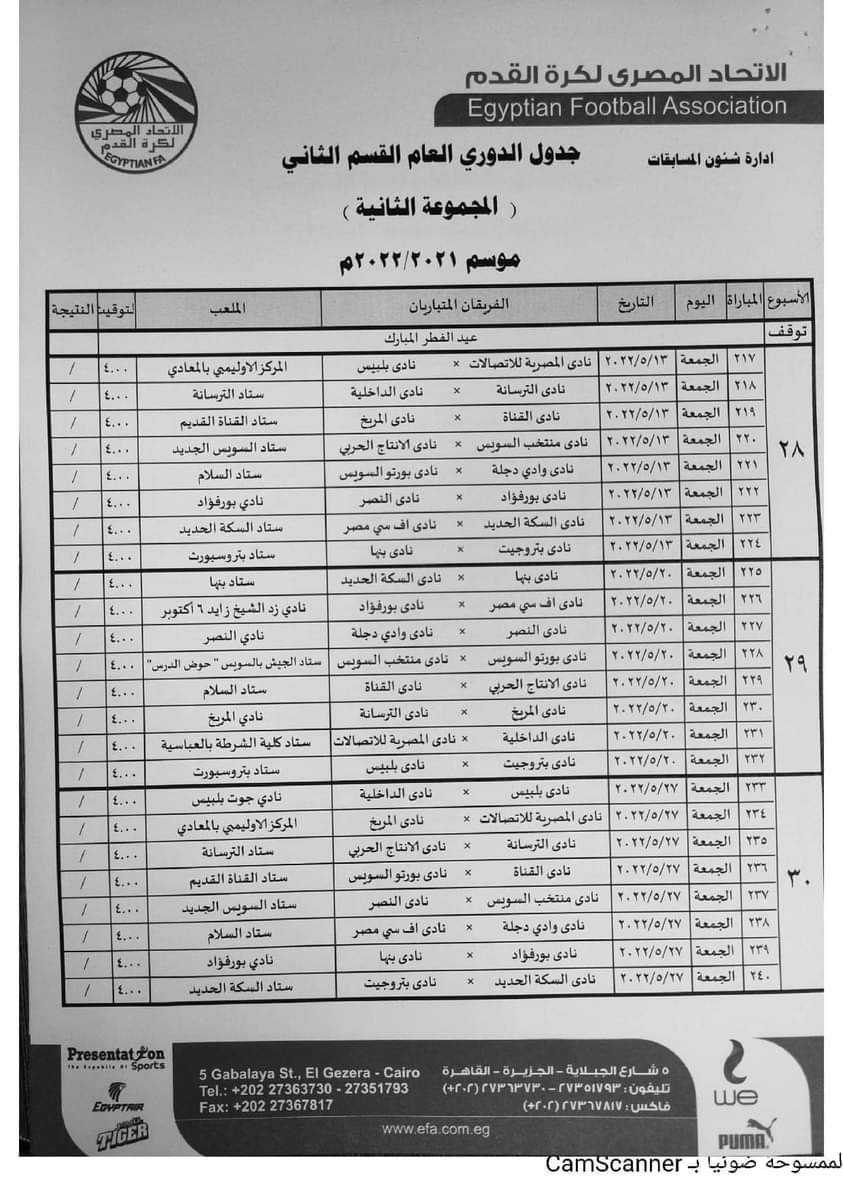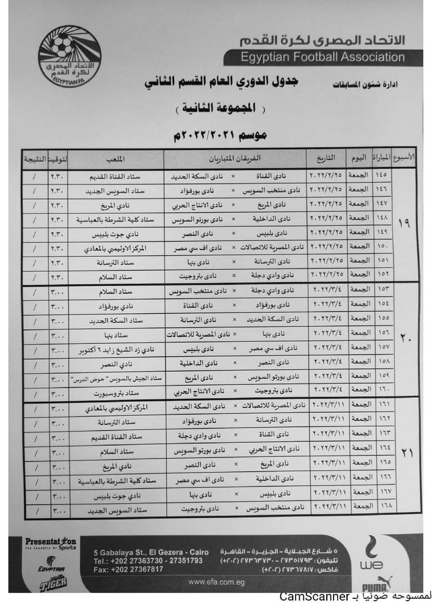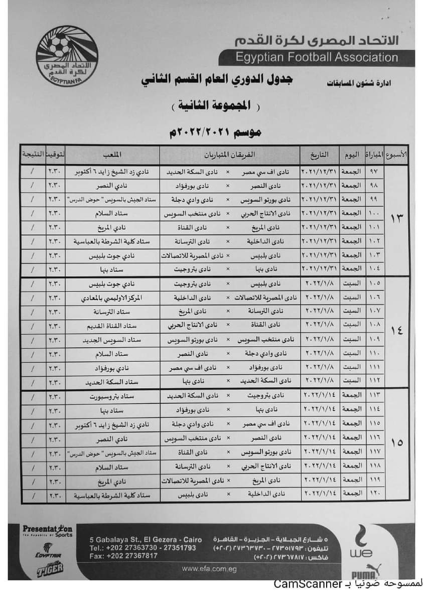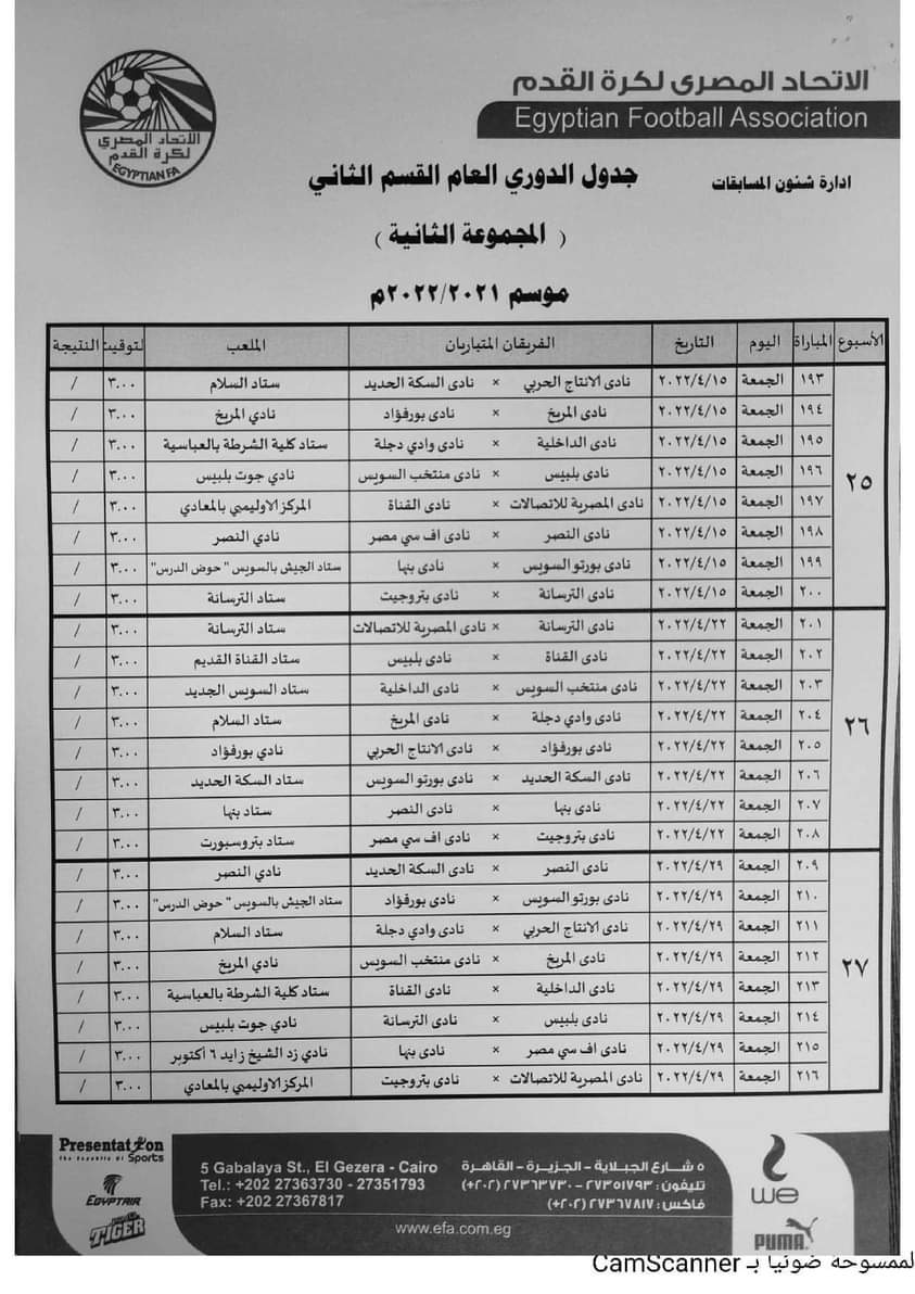 تنشر فيتو الجدول الكامل لمباريات المجموعة الثانية لمسابقة دوري القسم الثاني مجموعة القاهرة والقناة موسم 2021 /2022.