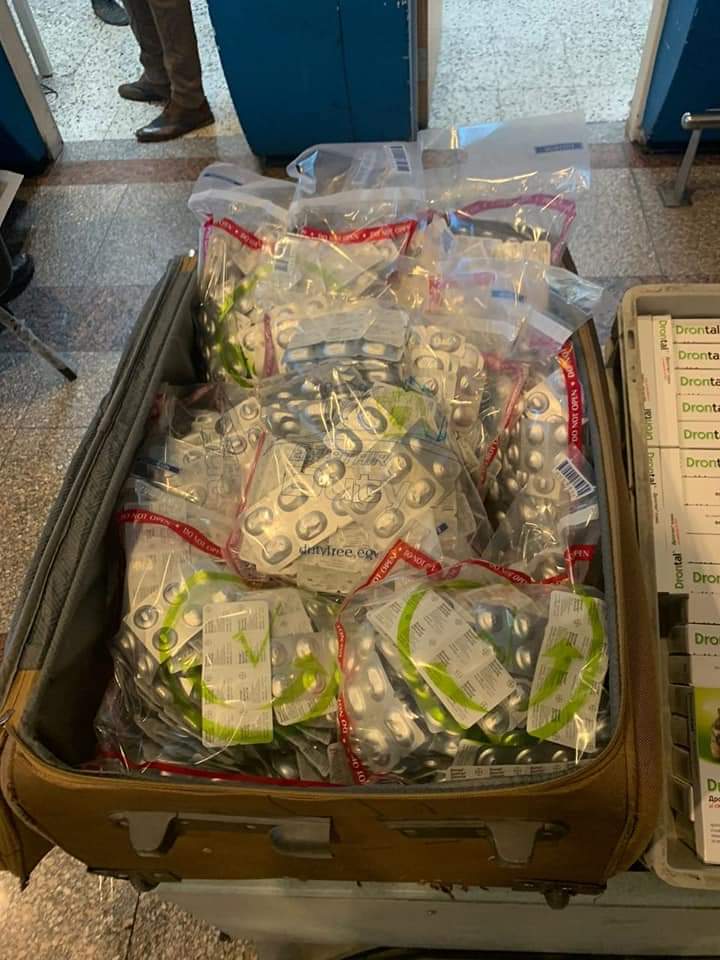 وبالعرض على جابر محمد موسى نائب مدير جمارك قرر تكليف محمد رشاد مأمور الجمرك تحت اشراف مهند سامي مدير حركه تفتيش الركاب بتفتيش امتعة الراكب تفتيشا دقيقا فتبين وجود ٦٦٨ شريط أدوية بشرية متنوعة مخبأة داخل قاع سحري داخل الحقيبه يصعب الوصول اليه.