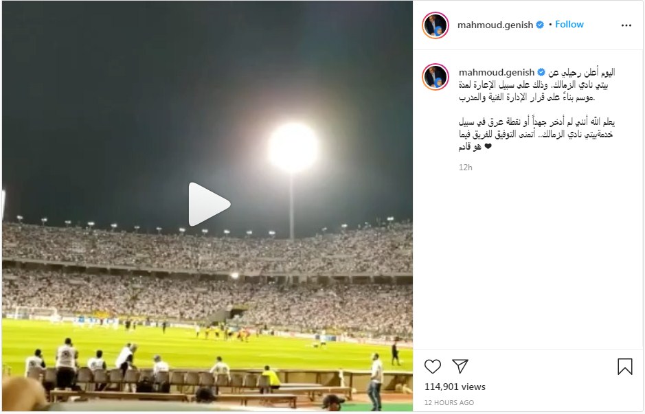 واختتم رسالته المؤثرة قائلًا: "يعلم الله أنني لم أدخر جهدًا أو نقطة عرق في سبيل خدمة بيتي نادي الزمالك.. أتمنى التوفيق للفريق فيما هو قادم".