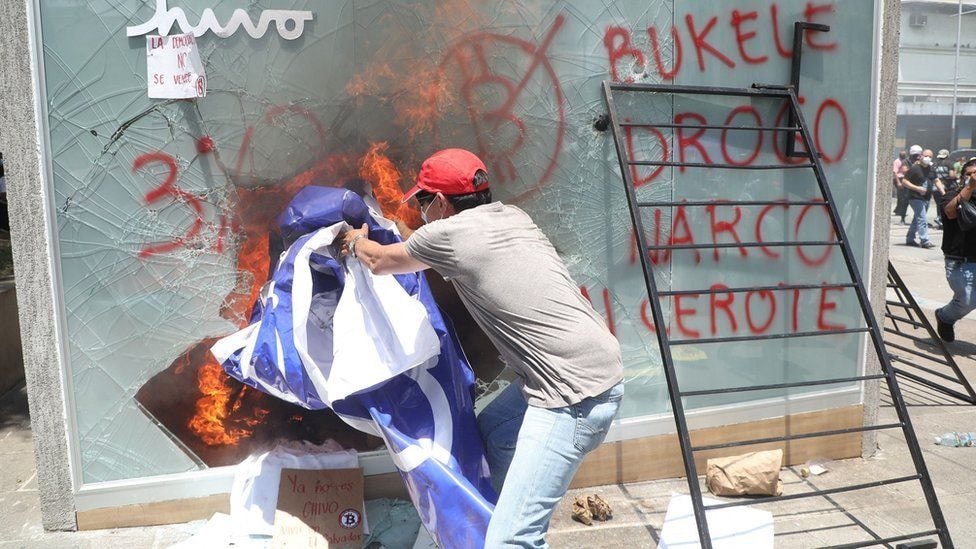 حرقوا ماكينات الصرف.. تظاهرات في السلفادور احتجاجا على العملة المشفرة | صور