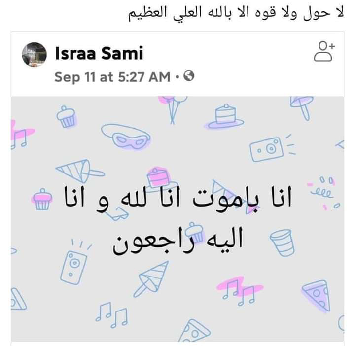 ونشرت الفقيدة قبل وفاتها بساعات تدوينة عبر صفحتها على فيس بوك وقالت فيها: “أنا بموت.. إنا لله وإنا إليه راجعون”.