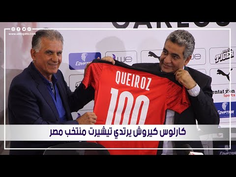 وارتدى البرتغالي كارلوس كيروش، تيشيرت الفراعنة في ختام المؤتمر الصحفي الذي أقامه اتحاد الكرة لتقديمه.