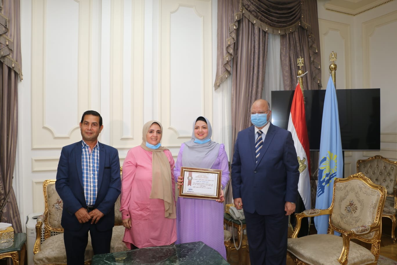 كرم اللواء خالد عبد العال محافظ القاهرة الطالبة نور سيد الطويل ابنة حي عين شمس لدورها الإيجابي في تجميل شارع المؤسسة الذى تقطن به بالجهود الذاتية على نفقتها ومنحها شهادة تقدير.