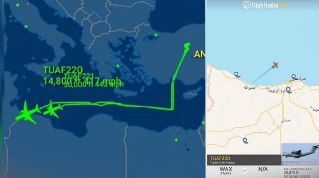 ورصد موقع "فلايت رادار"، لحظة مغادرة إحدى طائرتي الشحن العسكري التركيتين، من طراز إيرباص "A400"، للقاعدة بعد هبوطهما فيها من ساعة ونصف.