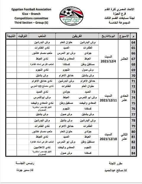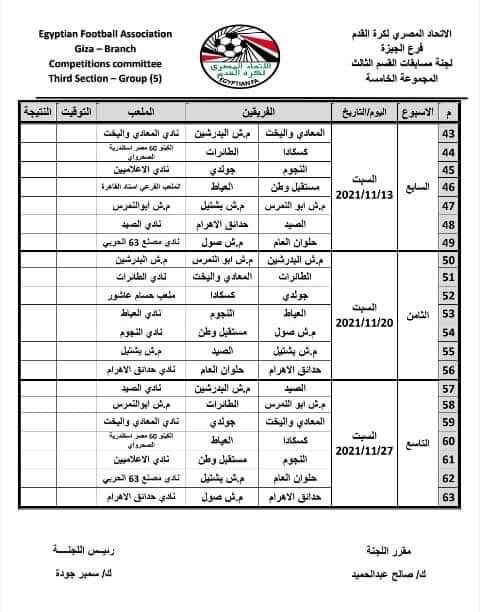 جدول الدور الأول لدوري القسم الثالث بمجموعة الجيزة