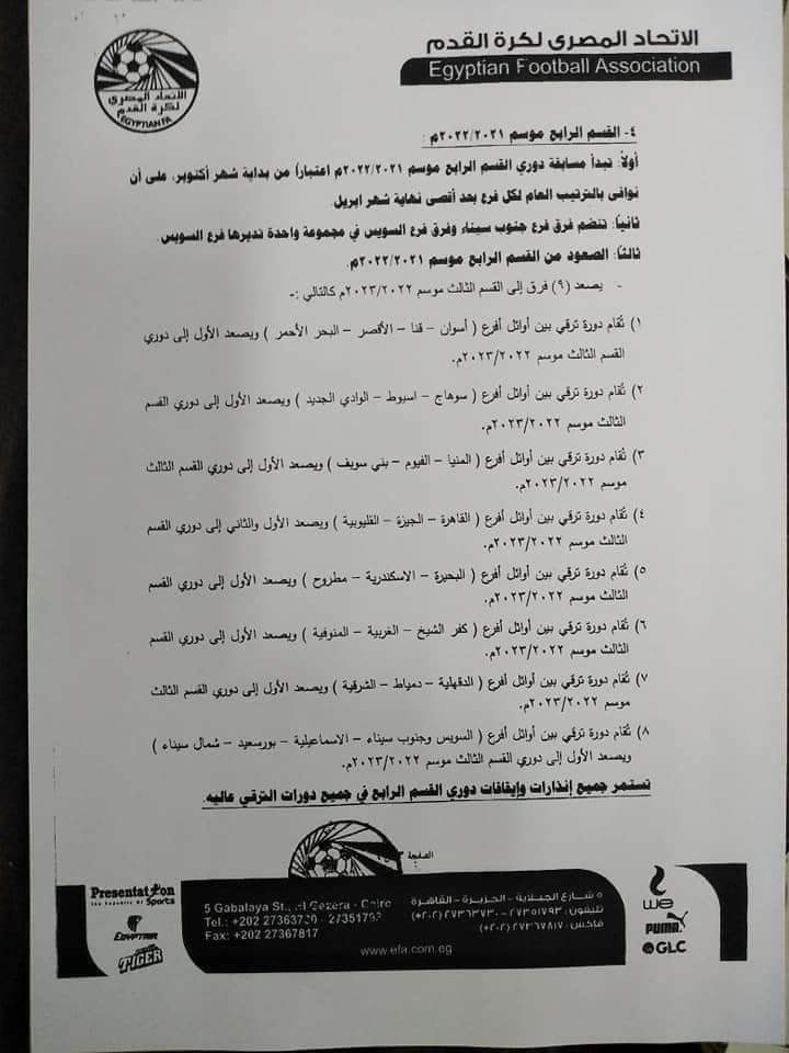 وأكدت الفرق رفضها التام لشروط مسابقة القسم الرابع لموسم ٢٠٢١ /٢٠٢٢ والخاصة بالتأهل لدوري القسم الثالث بعد تقليص عدد الفرق الصاعدة.