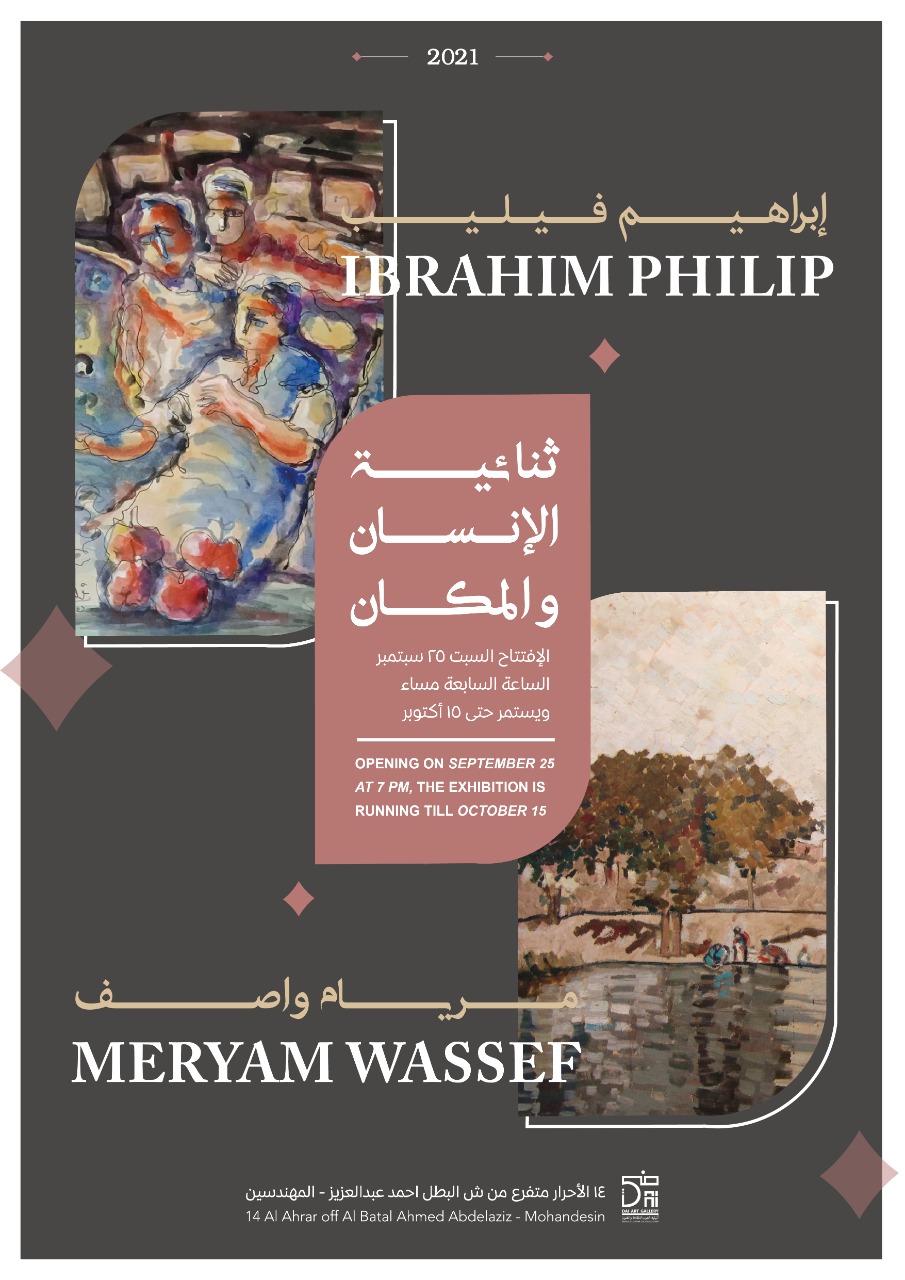 وقال الناقد التشكيلي هشام قنديل رئيس مجلس إدارة أتيليه العرب، إن المعرض يأتي تحت عنوان " ثنائية الإنسان والمكان "، حيث يقدم كل من الفنانين إبراهيم فيليب ومريام واصف، تجربته بشكل مستقل.