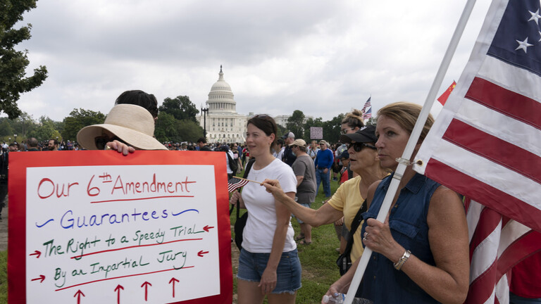 وعلى الرغم من المخاوف والتوترات، شارك أقل من مائة شخص في المظاهرة التي نظمت أمس دعما للمعتقلين على خلفية واقعة اقتحام الكابيتول من قبل حشود من أنصار ترامب أوائل العام الجاري.