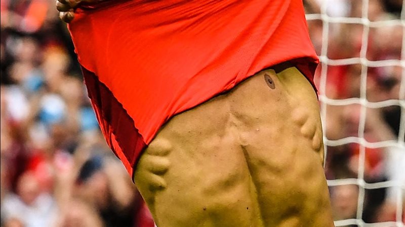 وعقب تسجيله الهدف قام محمد صلاح بخلع قميصه ليحصل على بطاقة صفراء من الحكم، لكن الشيء اللافت كانت بروز عضلات محمد صلاح عند خلع قميصه، وظهر في جانبي محمد صلاح مجموعة من العضلات التي أثارت الجدل الشديد بين رواد مواقع التواصل الاجتماعي.