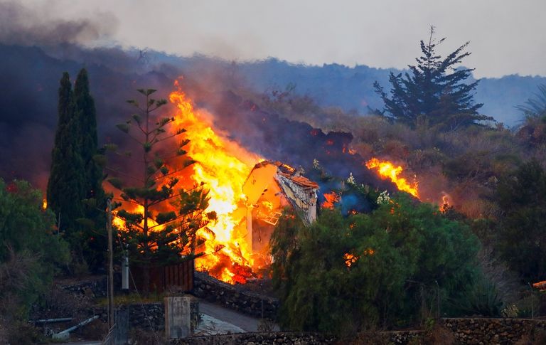 واصل بركان جزيرة لا بالما الإسبانية إلقاء حممه التي دمرت، بحسب السلطات، نحو 100 منزل بينما كانت تنحدر ببطء نحو البحر.