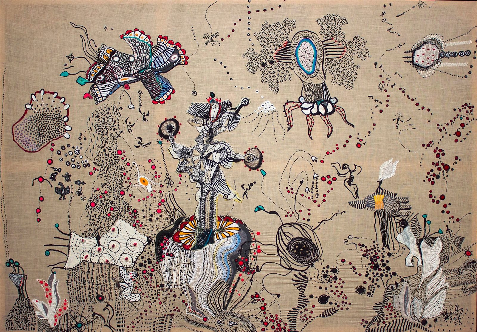 وأضافت: "على مدار مراحل تاريخي الفني قمت باستخدام تقنيات مختلفة، وفي هذه المرحلة وجدت أن استخدام القماش والإبر والخيط هي مغامرة جديدة للتشكيل بخامات تقليدية شكل ومفهوم معاصر، عنوان وفكرة المعرض مستوحى من رواية " آلة الزمن " للكاتب هيربرت جورج ويلز، وفي الرحلة قررت تبني منطق الطبيعة في تصوير كل مشهد فالطبيعة في النهاية صاحبة الكلمة الأولى والأخيرة.. فالطبيعة معلمتي الأولى".