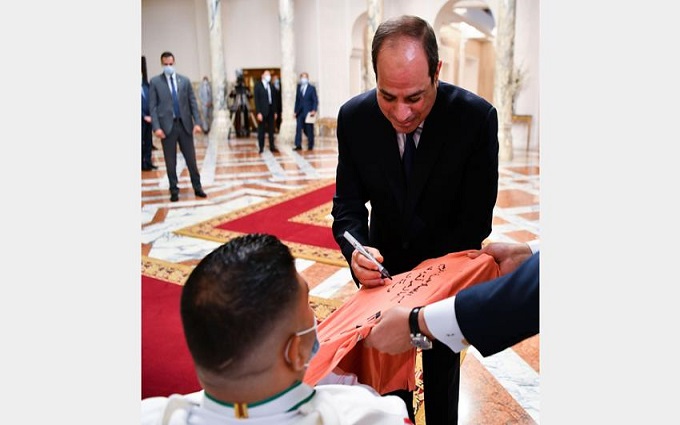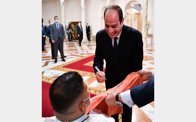 السيسي يوقع علي تي - شيرت أحد أبطال البارالمبية طوكيو 2020 | صور