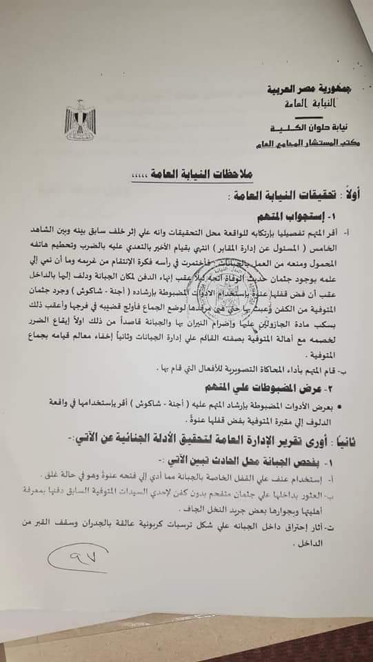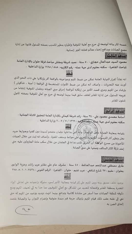 حصلت فيتو علي نص أقوال الشهود في واقعة نبش قبر ممرضة وإخراجها من كفنها واغتصابها وانتهاك حرمتها بحلوان ثم إشعال النار فيها.