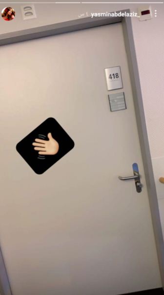 ونشرت ياسمين عبد العزيز عبر حسابها الرسمي بموقع الصور والفيديوهات انستجرام، وعبر خاصية ستوري، صورة لباب غرفتها بالمستشفى وعليه علامة يد تلوح، لتعلن أنها مغادرة.