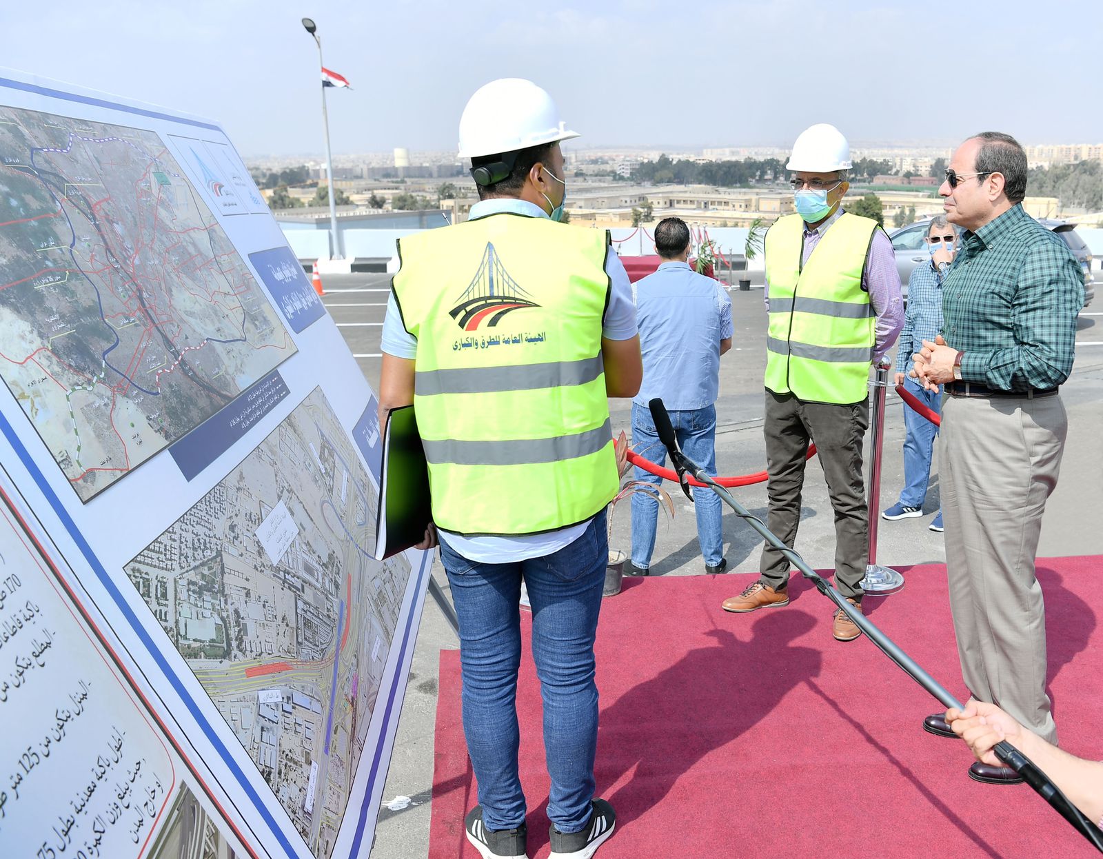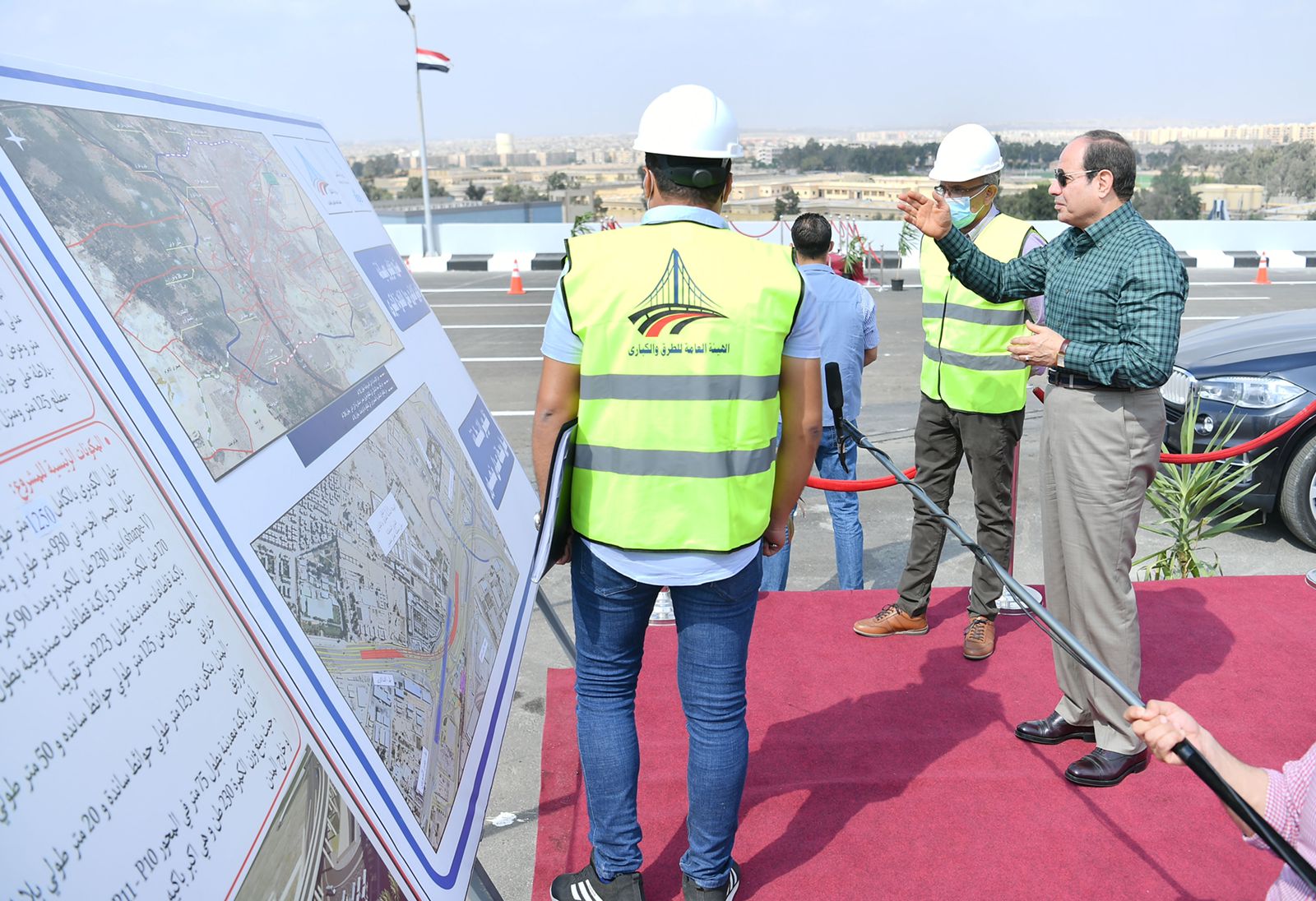 تفقد الرئيس عبد الفتاح السيسي، بعد ظهر اليوم الجمعة اعمال تطوير وتوسعة القوس الشرقي للطريق الدائري والمحاور الفرعية المغذية له بداية من محور جيهان السادات بطريق صلاح سالم، ثم المنطقة المحيطة بحي الأسمرات وربطها بمحور الشهيد ومحور شينزو آبي وهي الطرق الجديدة التي تخدم عشرات الآلاف من السيارات علي مدار الساعة حيث ساهمت بشكل كبير في تخفيف التكدس المروري واختصار زمن رحلات المواطنين اليومية حول مناطق القاهرة الكبرى وحققت سلاسة وسرعة التنقل وتخفيض معدلات حوادث السيارات فضلًا عن توفير تكلفة الوقود.