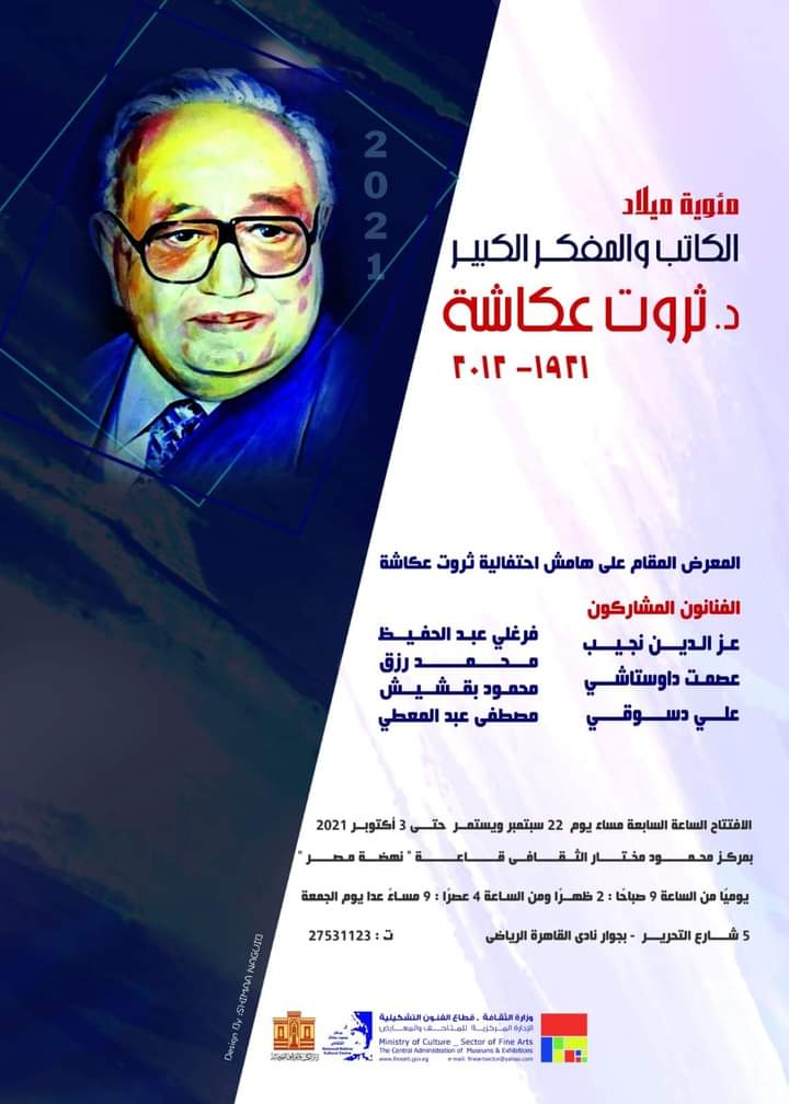 يفتتح الدكتور خالد سرور رئيس قطاع الفنون التشكيلية في السابعة مساءً غدًا الأحد معرضًا فنيًا بمركز محمود مختار الثقافي ضمن مشاركة القطاع في برنامج الوزارة الاحتفائي، وذلك بعدما أعلنت وزيرة الثقافة أن 2021 هو عام الكاتب والمفكر الكبير ثروت عكاشة.