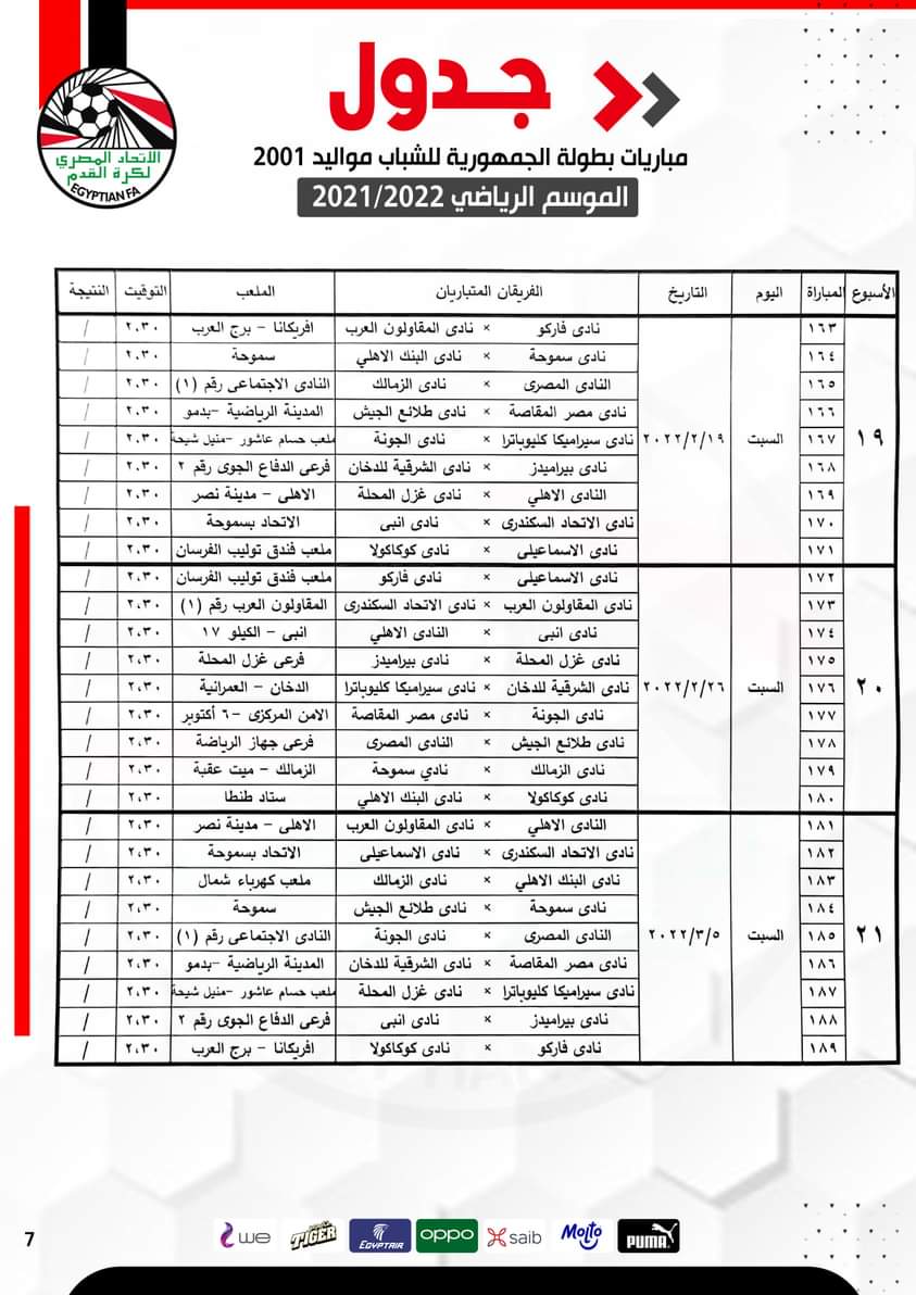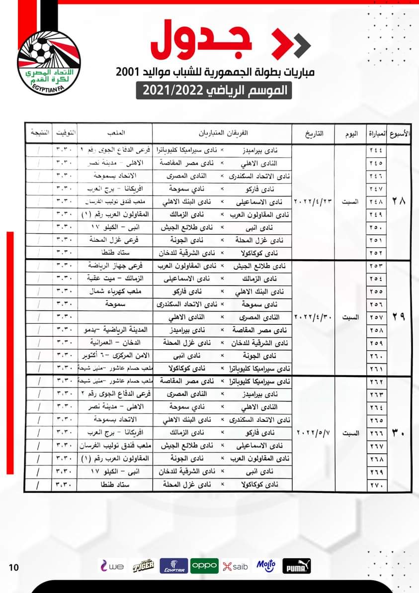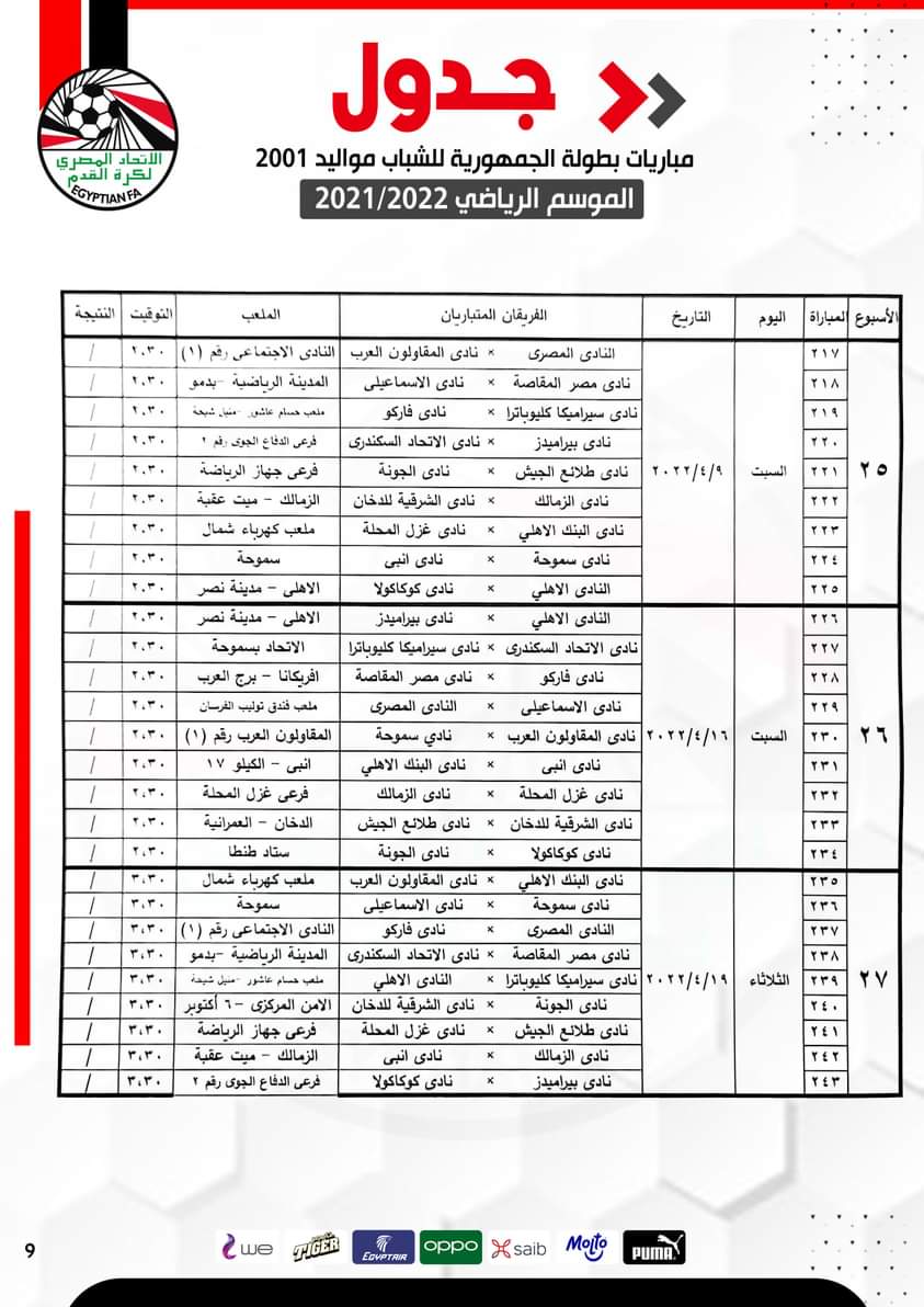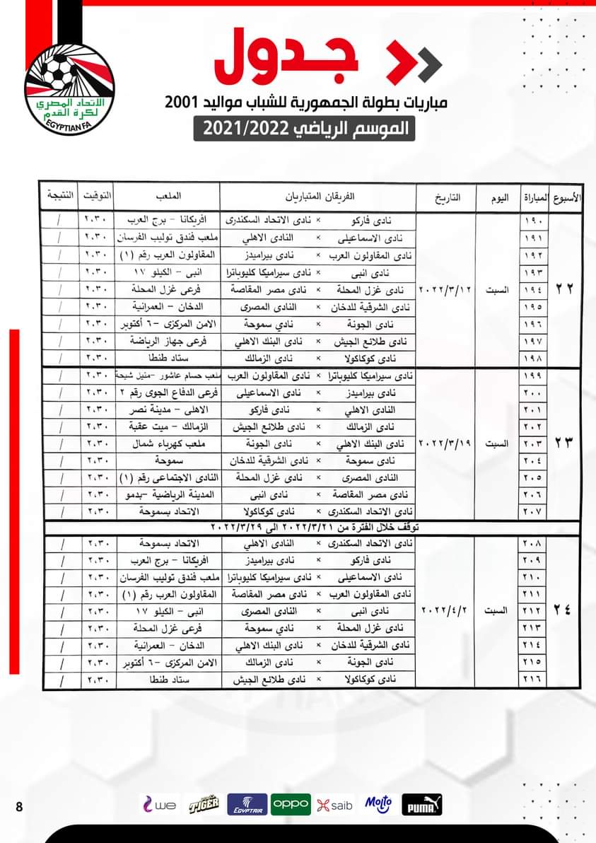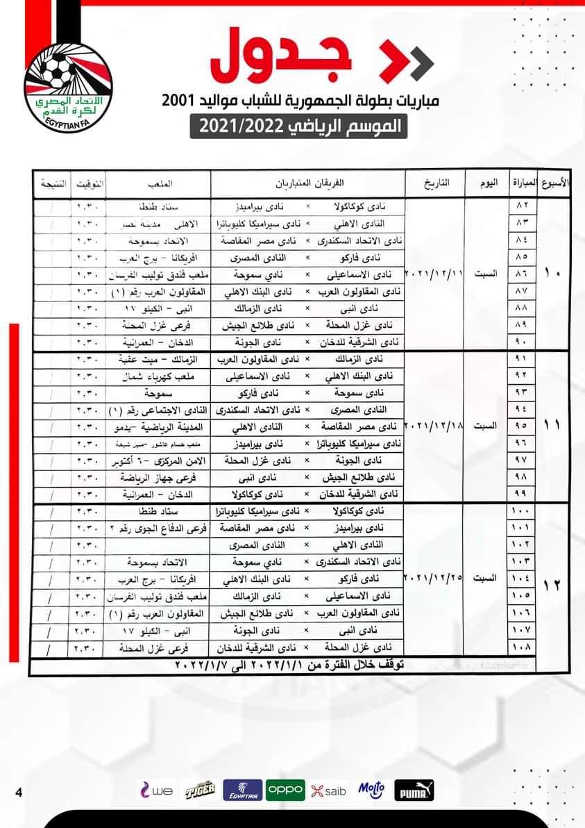 جدول مباريات دوري الجمهورية للشباب مواليد 2001