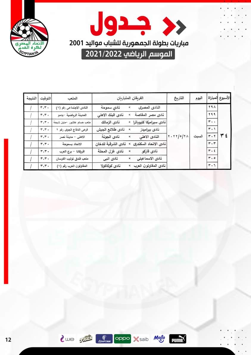 أعلن اتحاد الكرة، جدول مسابقة دوري الجمهورية للشباب مواليد 2001، دوري الرديف لموسم 2021 - 2022.