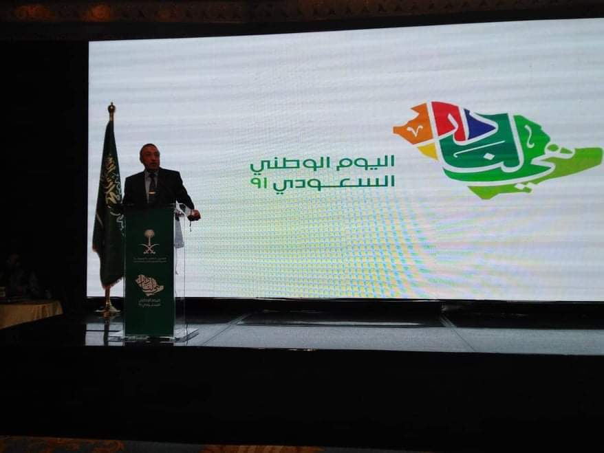 وأشار "الهويشان" إلى أن الممكلة تحتفل بعيدها الوطني رقم 91، تحت شعار «هى لنا دار»، والذي استلهم للاستشعار بما تقدمه المملكة للمواطنين والمقيمين على أرضها وتأمين كافة ما يلزمهم عبر تحسين الخدمات المقدمة لهم وتطوير الأنظمة الحكومية ورفع مستوى التعليم والارتقاء بالرعاية الصحية وتطوير البنية التحتية وتسهيل ممارسة الأعمال والتوسع في التحول الرقمي وتنظيم سوق العمل وتمكين المرأة.