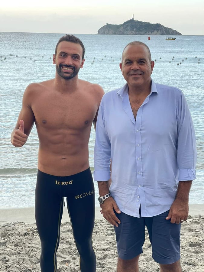 وحصد البطل مروان العمراوي لاعب منتخب مصر للسباحة بالزعانف الميدالية الفضية والمركز الثاني في سباق ٣ كيلو متر سباحة بالزعانف المزدوجة.
