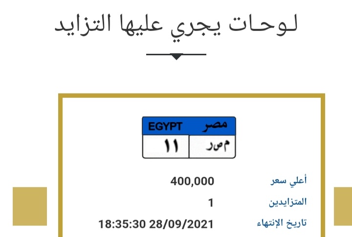 وأشار المصدر، يحصل الراسى عليه المزاد على شهادة تفيد ملكيته لحق استخدام الحروف والأرقام المميزة للوحات المعدنية، ويتم النص فيها على الحقوق المكتسبة له من نقل الحروف والأرقام على أى مركبة ملكه من خلال وحدة تراخيص المرور كما تنص على حق التوريث، وتخضع كافة المركبات التي تُوضع عليها حروف وأرقام مميزة لكافة القوانين المعمول بها بجمهورية مصر العربية، كما تطبق عليها كافة الشروط واللوائح الخاصة بالمرور.