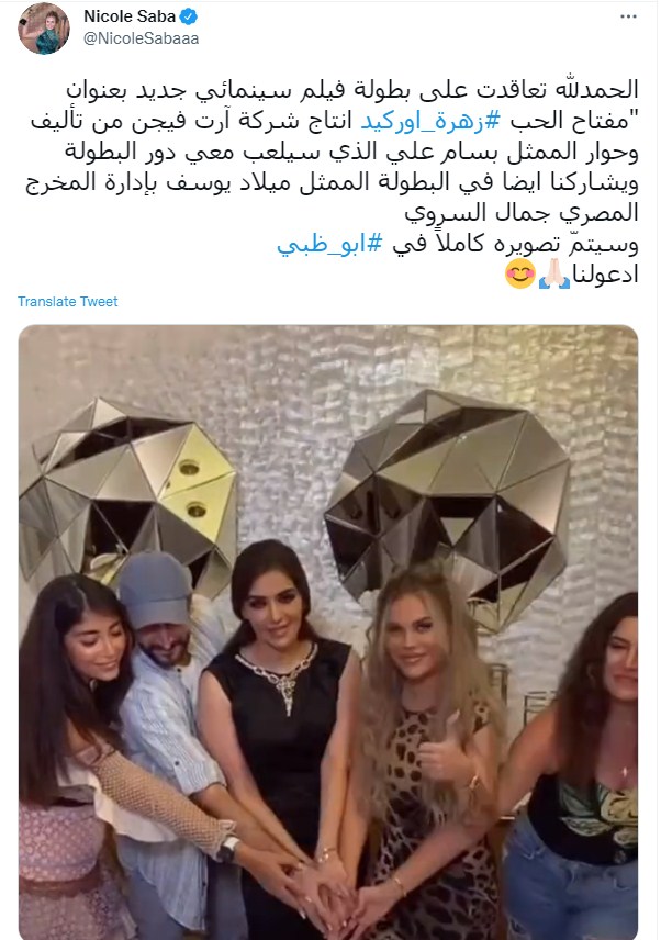 وكتبت نيكول سابا تغريدة على تويتر " الحمدلله تعاقدت على بطولة فيلم سينمائي جديد بعنوان "مفتاح الحب #زهرة_أوركيد انتاج شركة آرت فيجن من تأليف وحوار الممثل بسام علي الذي سيلعب معي دور البطولة ويشاركنا أيضا في البطولة الممثل ميلاد يوسف بإدارة المخرج المصري جمال السروي وسيتمّ تصويره كاملًا في #ابو_ظبي ادعولنا"