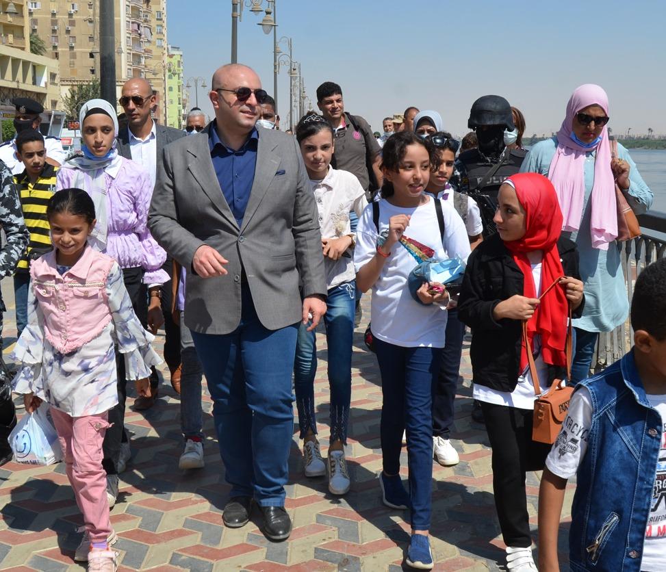وأبدى الطلاب إعجابهم الشديد بمشروع كورنيش النيل الذي سيكون متنفس حضاري غير مسبوق لأبناء المحافظة، وأنه سيكون مفتوحا أمام الجميع، لاسيما وأنه أوشك على الإفتتاح بعد تطوير الممشى والطريق العلوي، يجري الإنتهاء من تطوير الممشى السفلي بطول 1.5 كيلو متر في المسافة من قاعة المؤتمرات حتى نادي الكشافة البحرية.