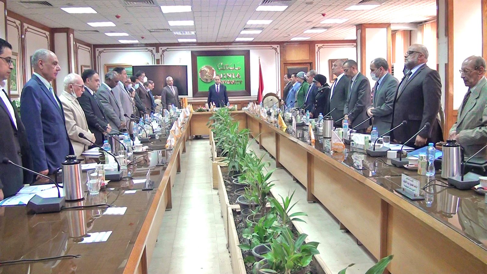 وقف أعضاء مجلس جامعة المنيا في مستهل انعقاد المجلس برئاسة الدكتور مصطفى عبد النبي عبد الرحمن رئيس الجامعة، دقيقة حدادًا على روح فقيد مصر المشير محمد حسين طنطاوي القائد العام للقوات المسلحة ووزير الدفاع والإنتاج الحربي الأسبق، تقديرًا ووفاءً لتضحياته وصموده في حقبة فارقة من تاريخ الوطن، وكرمزًا عسكريًا من أبطال حرب أكتوبر المجيدة، الذي أفني حياته في خدمة تراب الوطن، مدافعًا وحاميًا لأمنه واستقراره في أصعب المواقف .
