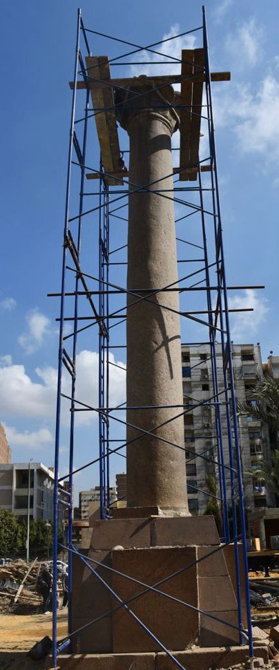 وأوضح الدكتور مصطفى وزيري الأمين العام للمجلس الأعلى للآثار، أن مٌرممي وأثرى المجلس بدأوا في أعمال تنظيف وإزالة الاتساخات والتكلسات التي تراكمت علي العمود على مر الزمن بسبب عوامل التعرية، كما سيقومون بأعمال التقوية والتدعيم لإعادة تركيب ورفع العمود ونقلة لعرضه الى مكان متميز بوسط الحديقة، بما يتناسب مع قيمته التاريخية والأثرية والجمالية.