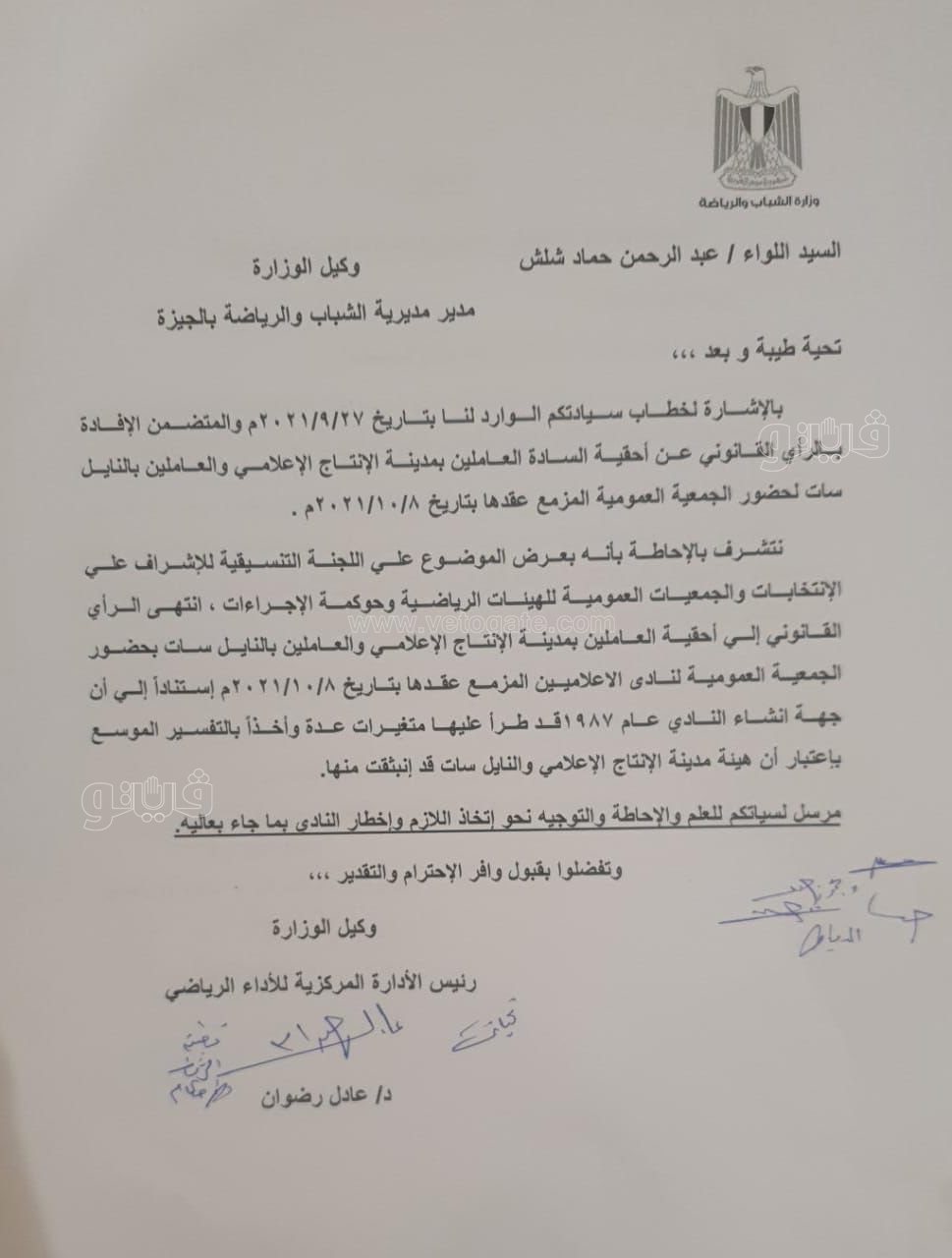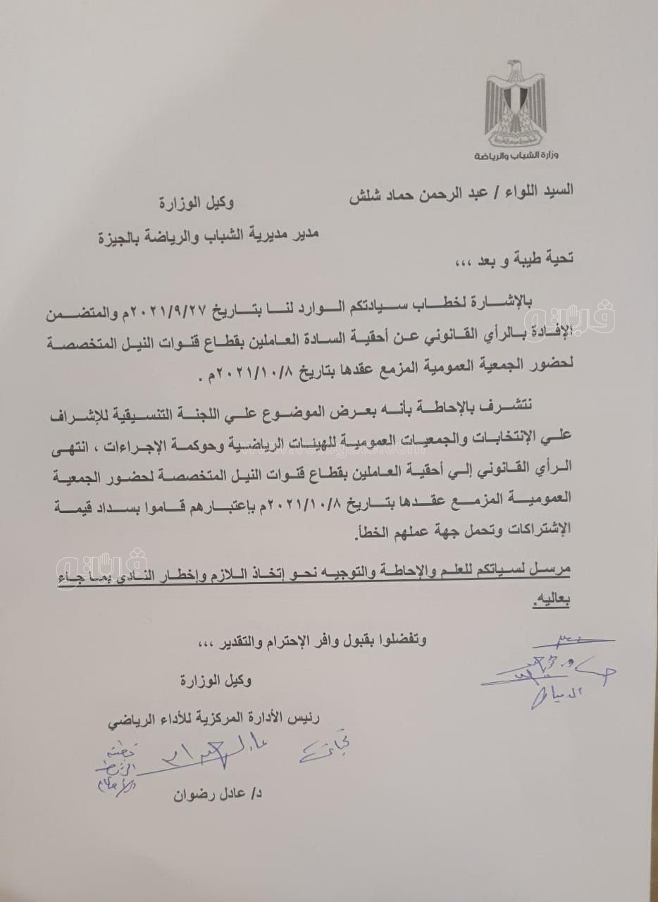 وأكد عدد كبير من أعضاء نادي الإعلاميين في شكواهم أنه رغم خطاب الإدارة المركزية للأداء الرياضي بوزارة الشباب والرياضة والمديرية بإرجاء تغيير العضويات لحين الفصل فيها قانونا من إدارة الفتوى والتشريع برئاسة الجمهورية، إلا أن إدارة النادي تتجاهل تلك الخطابات وتصر على استبعادهم من الجمعية العمومية.