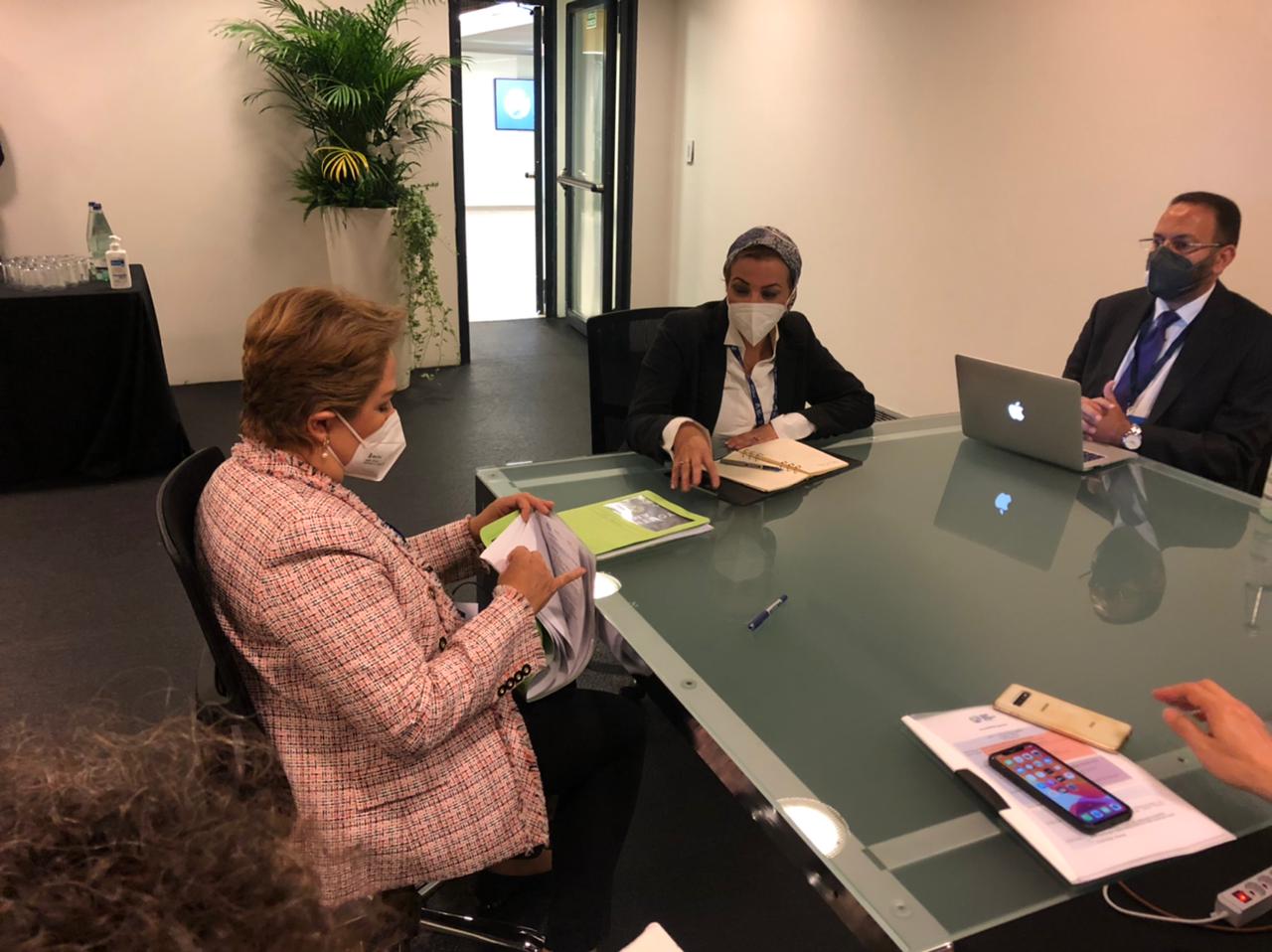 التقت الدكتورة ياسمين فؤاد وزيرة البيئة، باتريشيا اسبينوزا المدير التنفيذى لسكرتارية الامم المتحدة للاتفاقية الاطارية للتغيرات المناخية، وذلك ضمن سلسلة من اللقاءات الثنائية التى من المقرر عقدها على هامش مشاركتها بالمشاورات التمهيدية قبل مؤتمر الأطراف الـ 26 للاتفاقية الإطارية لتغير المناخ الذى تستضيفه الحكومة الإيطالية بالتعاون مع الحكومة الانجليزية بمدينة ميلانو خلال الفترة من 30 سبتمبر الجارى حتى 2 أكتوبر القادم.