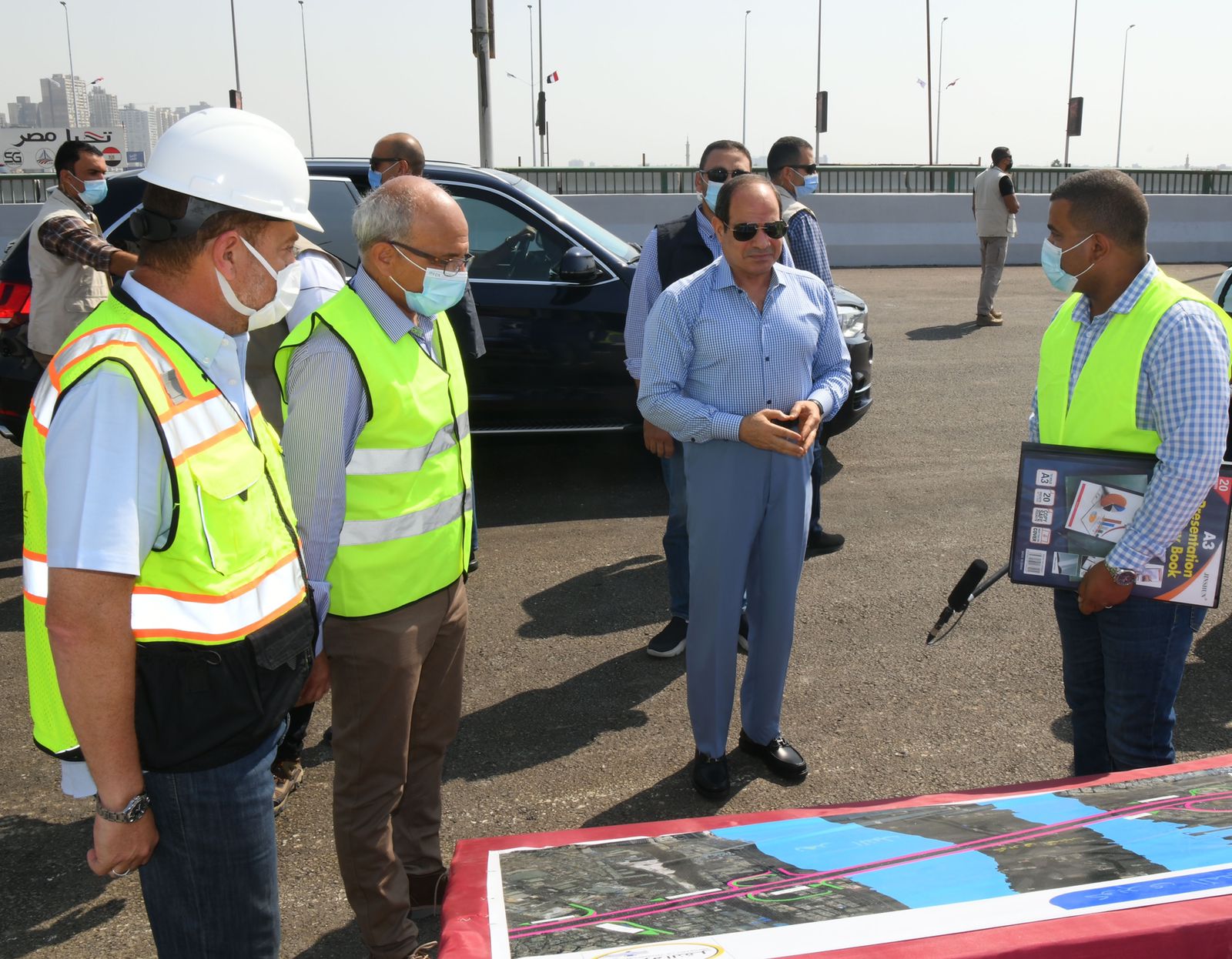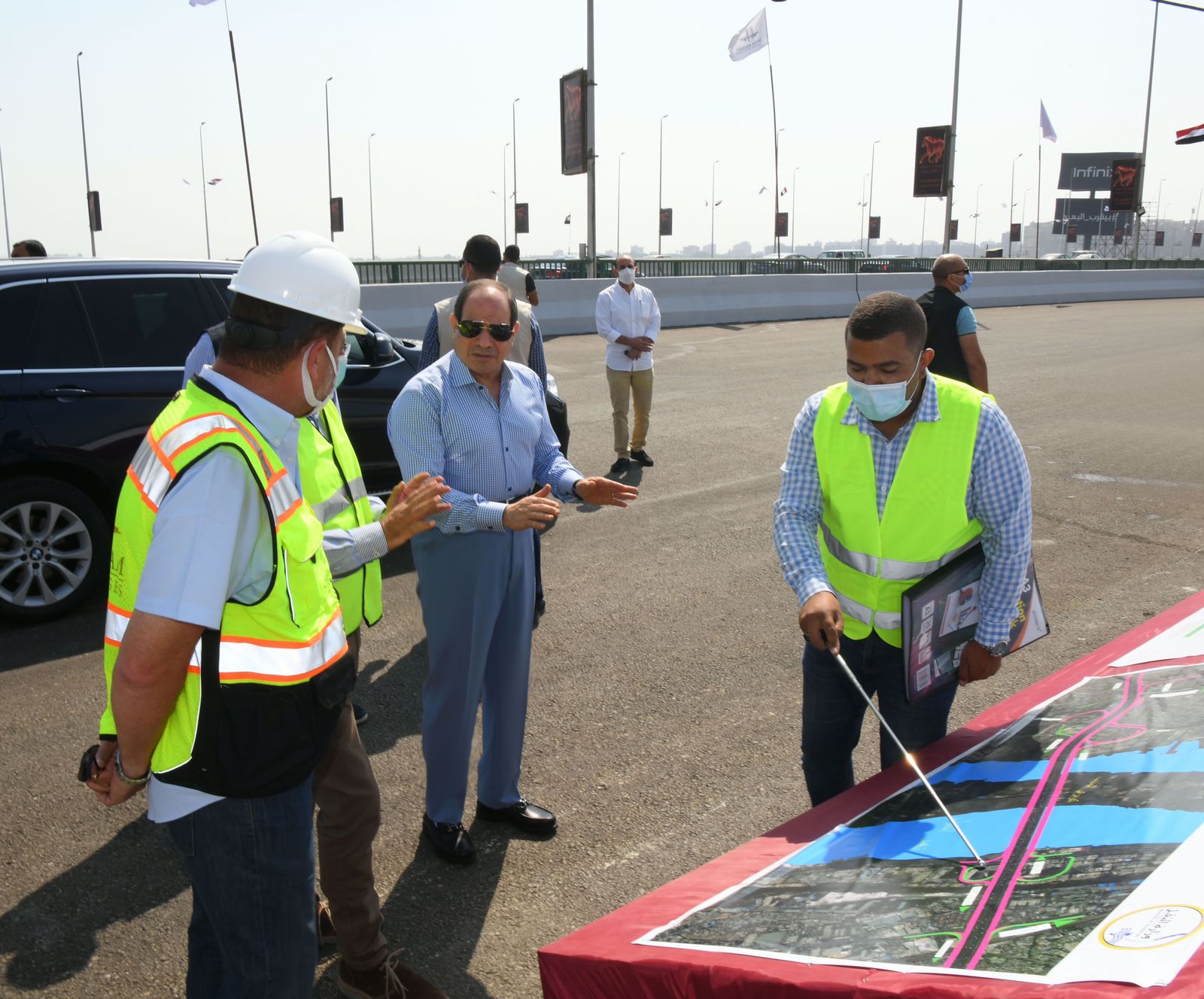 وقال السفير بسام راضي المتحدث الرسمي باسم رئاسة الجمهورية ان الرئيس السيسي تفقد أعمال التطوير والتوسعة في المحاور المحيطة بالقطاع الجغرافي بمطار القاهرة الدولي خاصة محور الأوتوستراد وكذلك توسعة ورفع كفاءة جميع الطرق الداخلية للاحياء السكنية المحيطة بمنطقة شيراتون لتخفيف حدة التكدس المروري للمركبات وتحقيق سلاسة تنقل المواطنين من والى المنطقة مع ربطها بالمحاور الرئيسية.