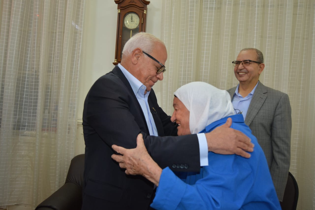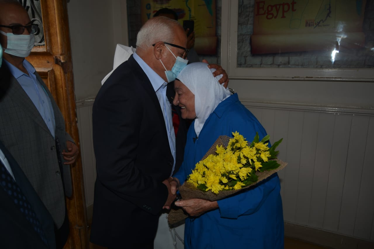 محافظ بورسعيد يكرم أم محمد صاحبة رحلة كفاح امتدت لـ 55 عامًا |صور