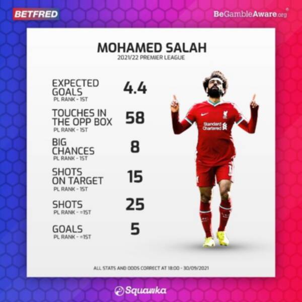 ووفقًا لشبكة "سكواوكا" للإحصاءات، فإن محمد صلاح سيطر على الصدارة في إحصاءات اللاعبين في البريميرليج هذا الموسم، حيث إنه أكثر من أحرز أهدافا (5)، وأكثر من سدد (25).