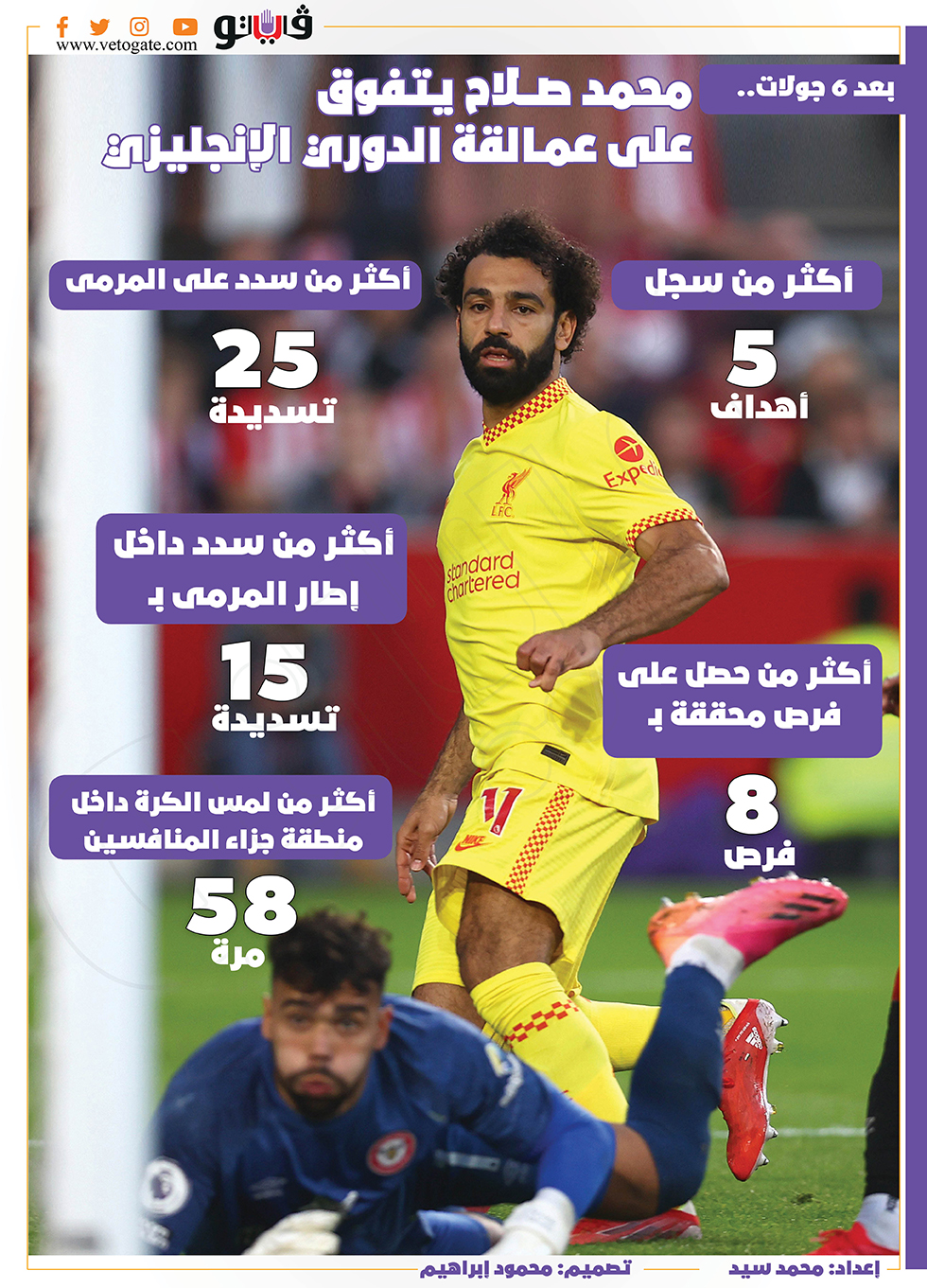 بعد 6 جولات.. محمد صلاح يتفوق على عمالقة الدوري الإنجليزي | إنفوجراف السبت 02/أكتوبر/2021 - 10:27 م 10/2/2021 10:27:51 PM محمد صلاح محمد سيد شارك طباعة 18 حجم الخط شارك طباعة الدوري الانجليزي محمد صلاح صلاح البريميرليج ليفربول ارقام محمد صلاح بطولة الدوري الانجليزي