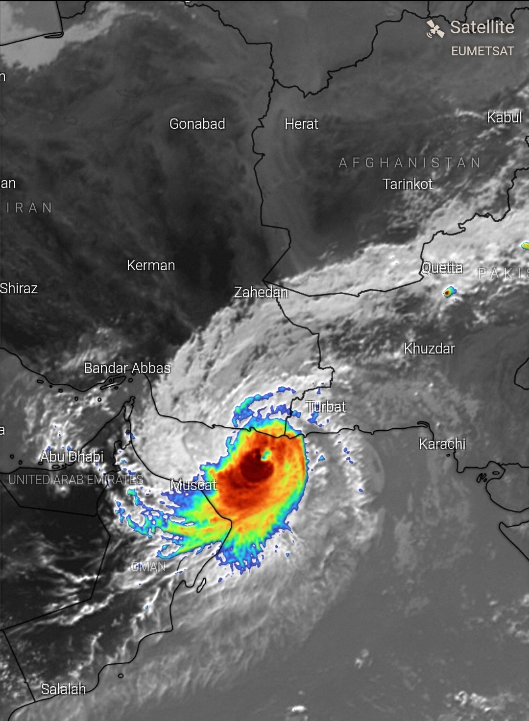 أعلنت الهيئة العامة للأرصاد الجوية، أنه لأول مرة في التاريخ نرى عاصفة استوائية داخل الخليج العربي تؤثر اليوم على سلطنة عمان وغدا على الإمارات بأمطار غزيرة ونشاط رياح.
