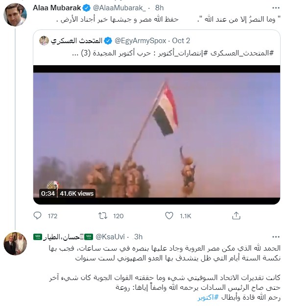 في الذكرى الـ48 لانتصارات أكتوبر.. رسالة علاء مبارك ونشطاء العرب لجنود مصر