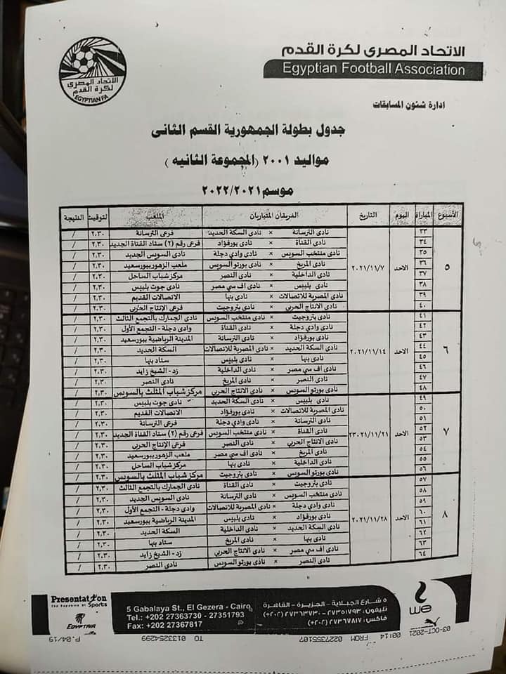 وانطلقت مسابقة دوري الجمهورية للشباب مواليد 2001 لأندية الدوري الممتاز 2 من أكتوبر الجاري، وتنتهي يوم 28 مايو 2022.