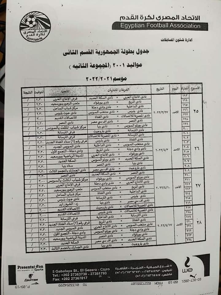 جدول مباريات دوري الجمهورية لأندية المجموعة الثانية بالقسم الثاني