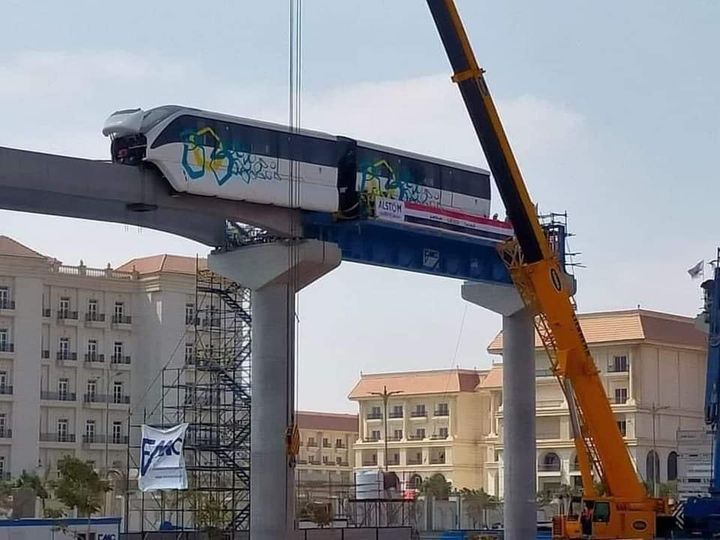 شاهد| أول صورة لتركيب مونوريل أكتوبر تمهيدا لتشغيله