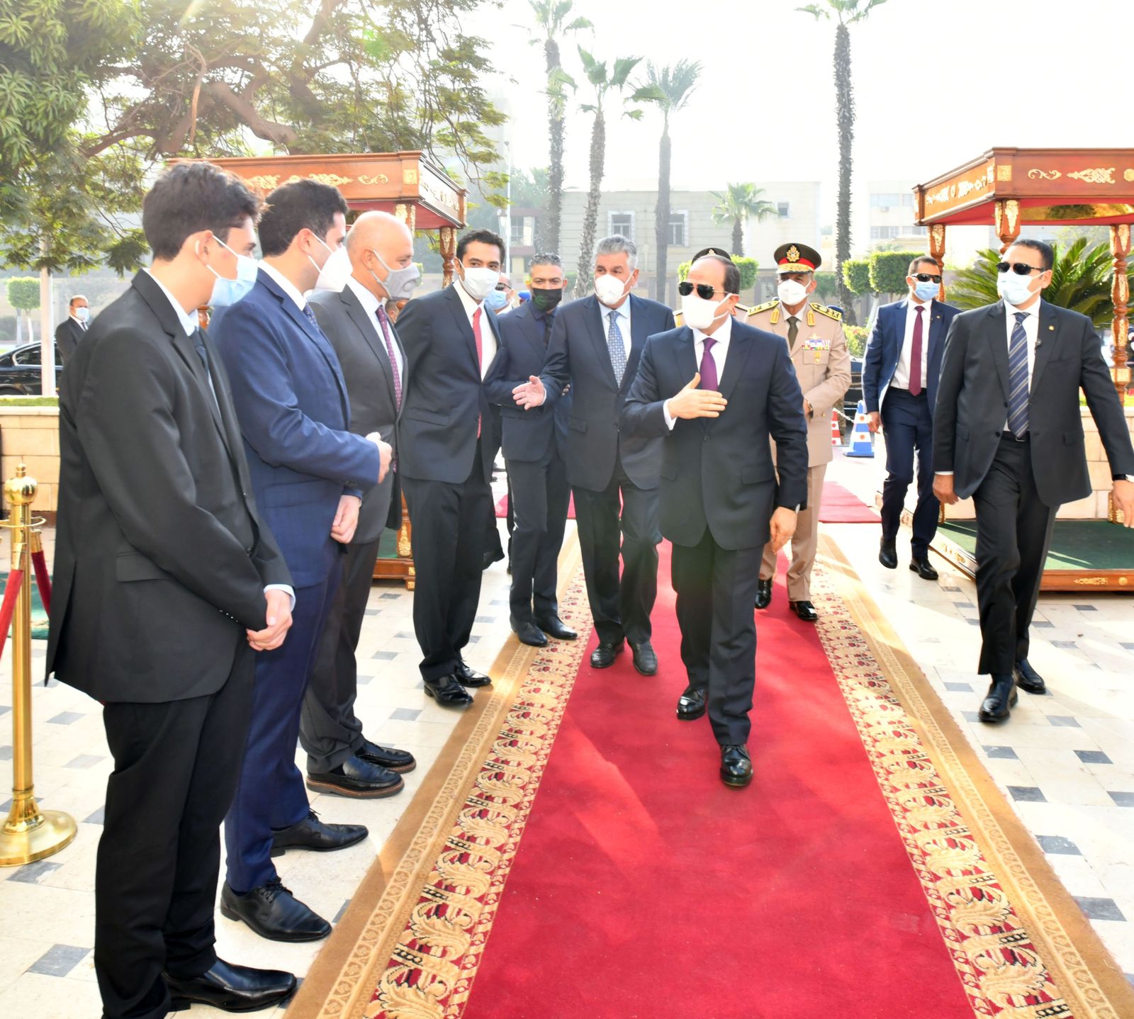 ثم قام الرئيس بوضع إكليل من الزهور على قبر الرئيس الراحل محمد أنور السادات وقراءة الفاتحة ترحمًا على روحه الطاهرة ومصافحة عدد من أفراد أسرته كما صافح عددًا من كبار قادة القوات المسلحة وكبار رجال الدولة.