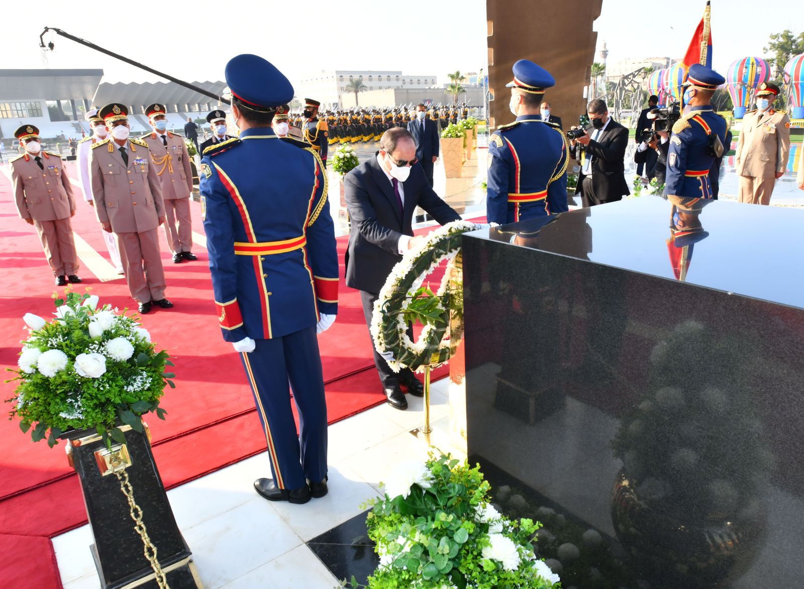10 صور ترصد وضع السيسي أكاليل الزهور علي قبور النصب التذكاري لشهداء القوات المسلحة والسادات وناصر