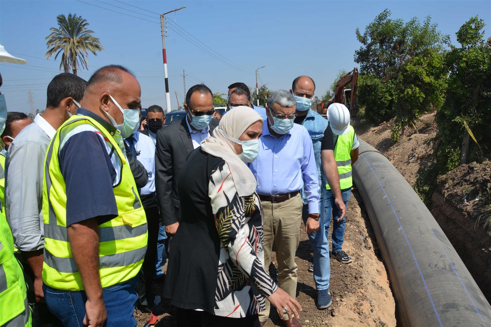 أعمال تبطين ترعة الحواصلية القبلية بطريق مصر أسوان الزراعي، حيث شدد المحافظ على الجهة المنفذة بضرورة مراعاة كافة الإجراءات الاحترازية والوقائية وتوفير كمامات لجميع العاملين تشديد، كما وجه بإزالة مخلفات الأعمال من المقاول على جانبي الترعة.