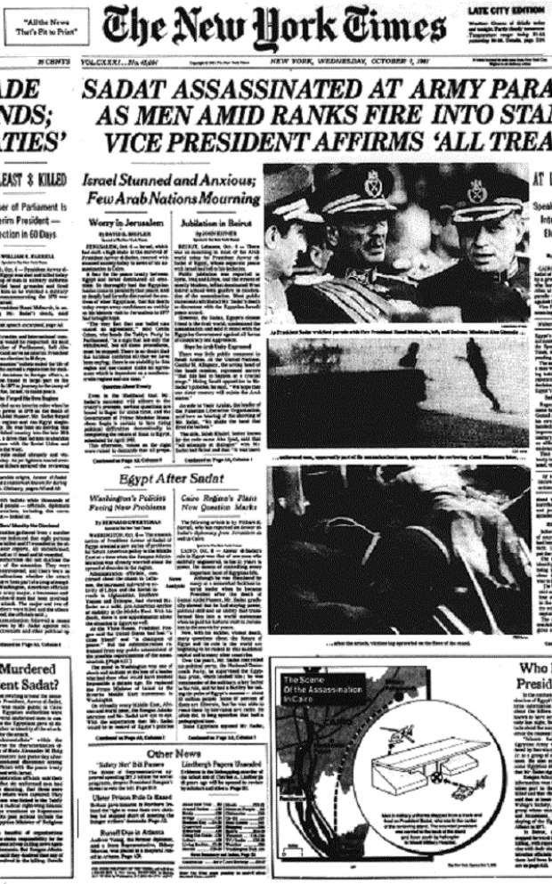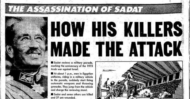 اغتيال السادات في عيون الصحف العالمية.. سان فرانسيسكو رسمت صورا توضيحية للعملية