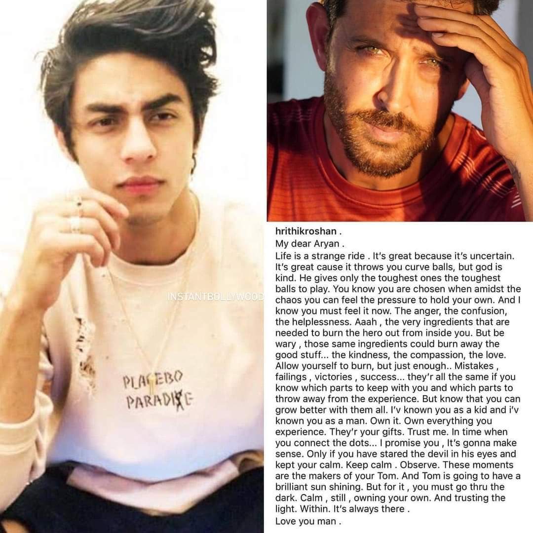 وعقب أن طلبت النيابة احتجاز نجل شاروخان علي ذمة القضية.. وجه نجم بوليوود ريثيك روشان لـ آريان.. قائلا: " الحياة رحلة غريبة ولكن الله رحيم ويرزق الأقوياء بالابتلاءات لأنه يعرف أنهم يستطيعون تحملها...