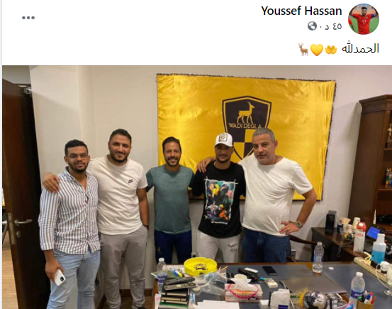 وعلق يوسف حسن علي الصورة بعد إتمام تعاقده مع وادي دجلة عبر صفحته على“ فيس بوك”: “ الحمد لله”.