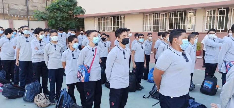 واتخذت مدرسة سان جورج الخاصة التابعة لإدارة النزهة التعليمية كافة الإجراءات الاحترازية والتعقيمات وقياس درجات الحرارة لجميع الطلبة.